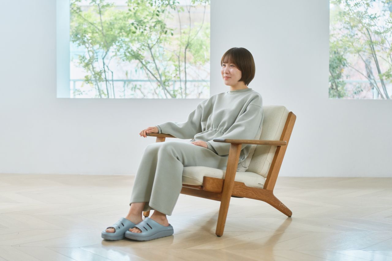 BAKUNEとの出会いは2021年ですね。マネジメント会社の方からいただきました。でも実は、半年くらい着てなくて(笑)。半年後にちょっと着てみようかなと思って着たら、「え、すごい着心地がいい」ってびっくりしたことを覚えています。そこから1年くらい、その1着をボロボロになるまで着ていました。それ以来、いろいろなタイプのBAKUNEを着ています。スウェット生地のシンプルなものから、最近出たソフトニットまで。BAKUNE歴は3年以上、もう手放せません。今は、「今日はこれ着たいな」ってその日の気分で選んでいます。