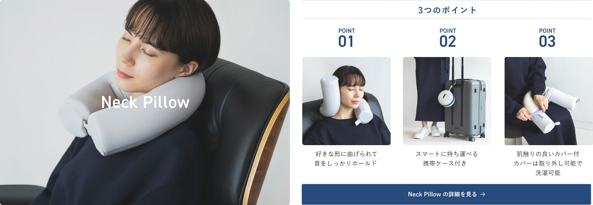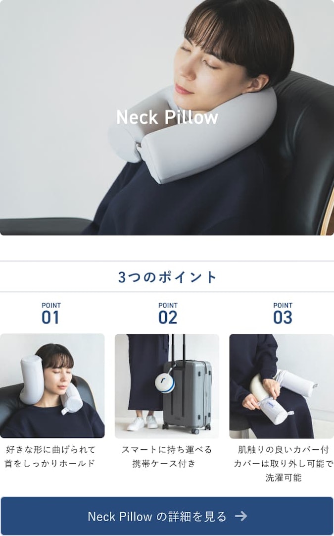 楽な体勢にフィットするので、移動時の寝る姿勢が原因の首肩の負担を軽減し、あなたの「移動時間の休息」をサポートします。