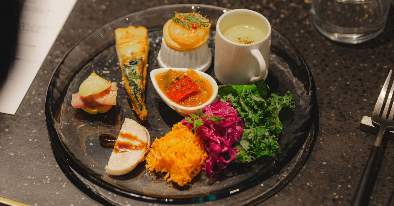 管理栄養士監修のコースメニューは、前菜のプレートから始まります。