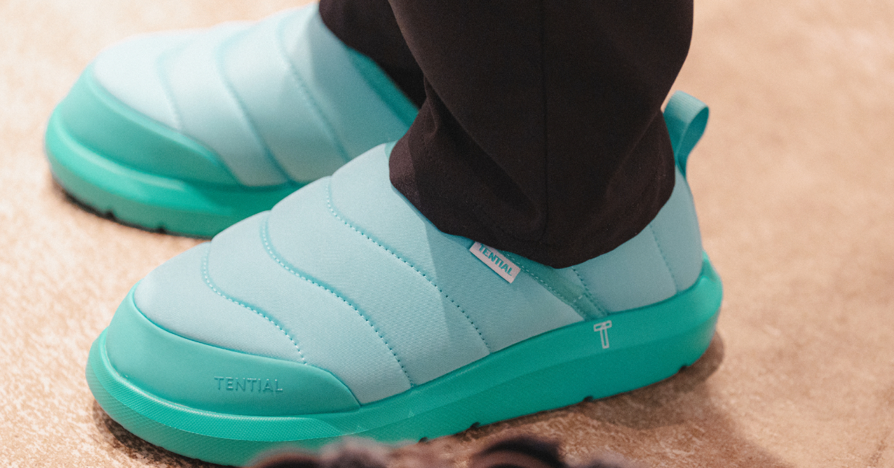 冬の凛とした空気が肌を刺す夜。オープンキッチンが温かく迎える会場で、まずはTENTIALのリカバリーサンダルに履き替えます。この瞬間から、身体も心も「リラックス・モード」へ。