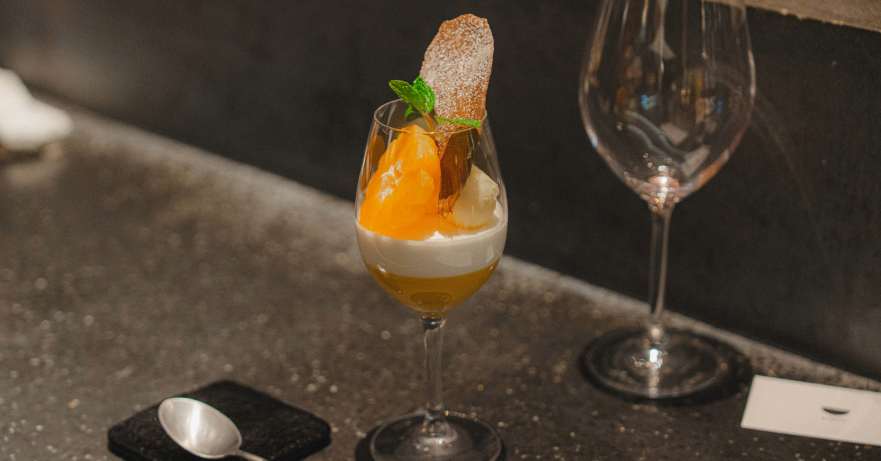 コースの締めくくりは、「ヨーグルトと季節の柑橘のグラスパフェ」。