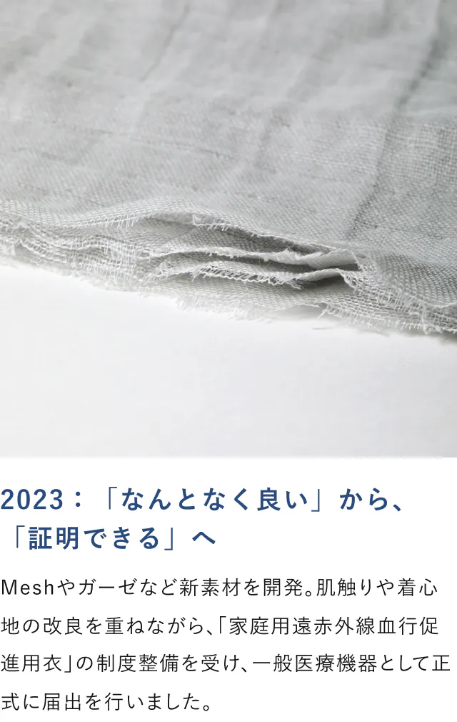 疲労回復という機能だけではなく、素材・構造・着心地、ひとつひとつを高め続けています。