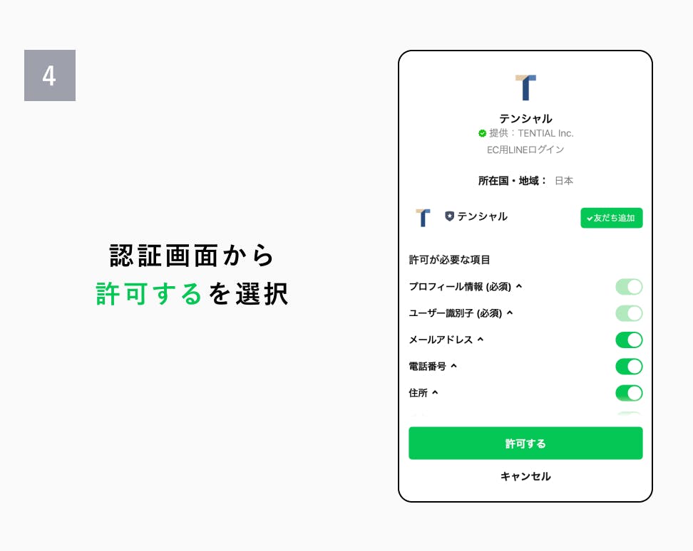 こちらで連携完了です!TENTIALでのお買い物をお楽しみください!
