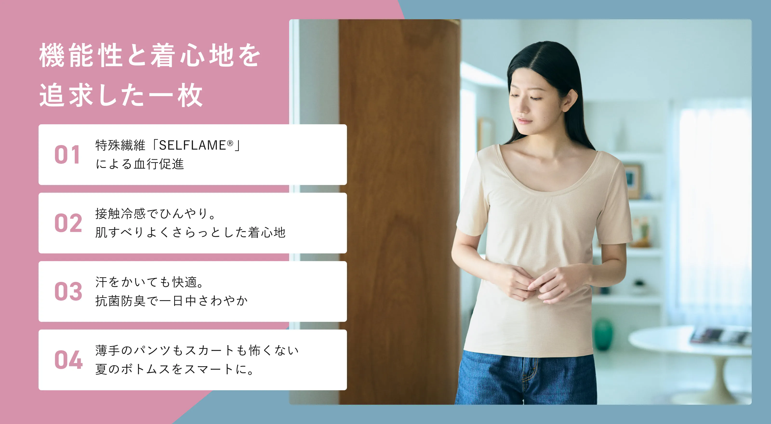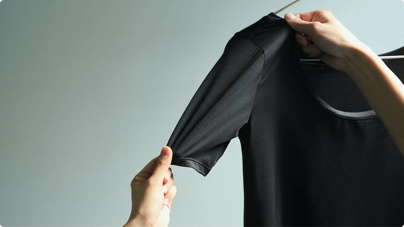 ストレッチ性をもたせることで、肌すべりがよくさらっとした着ごこちを実現しました。