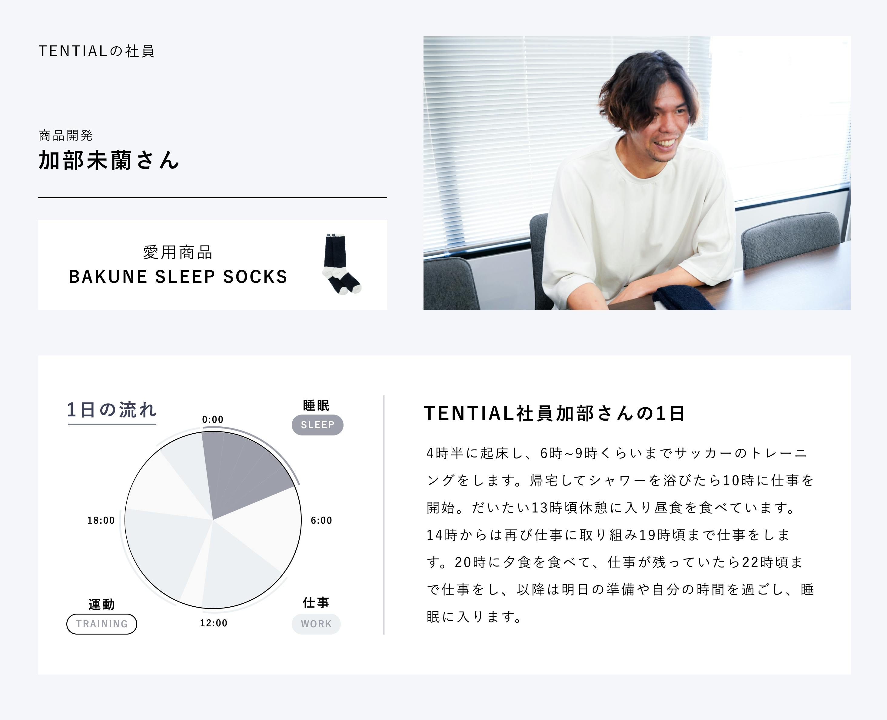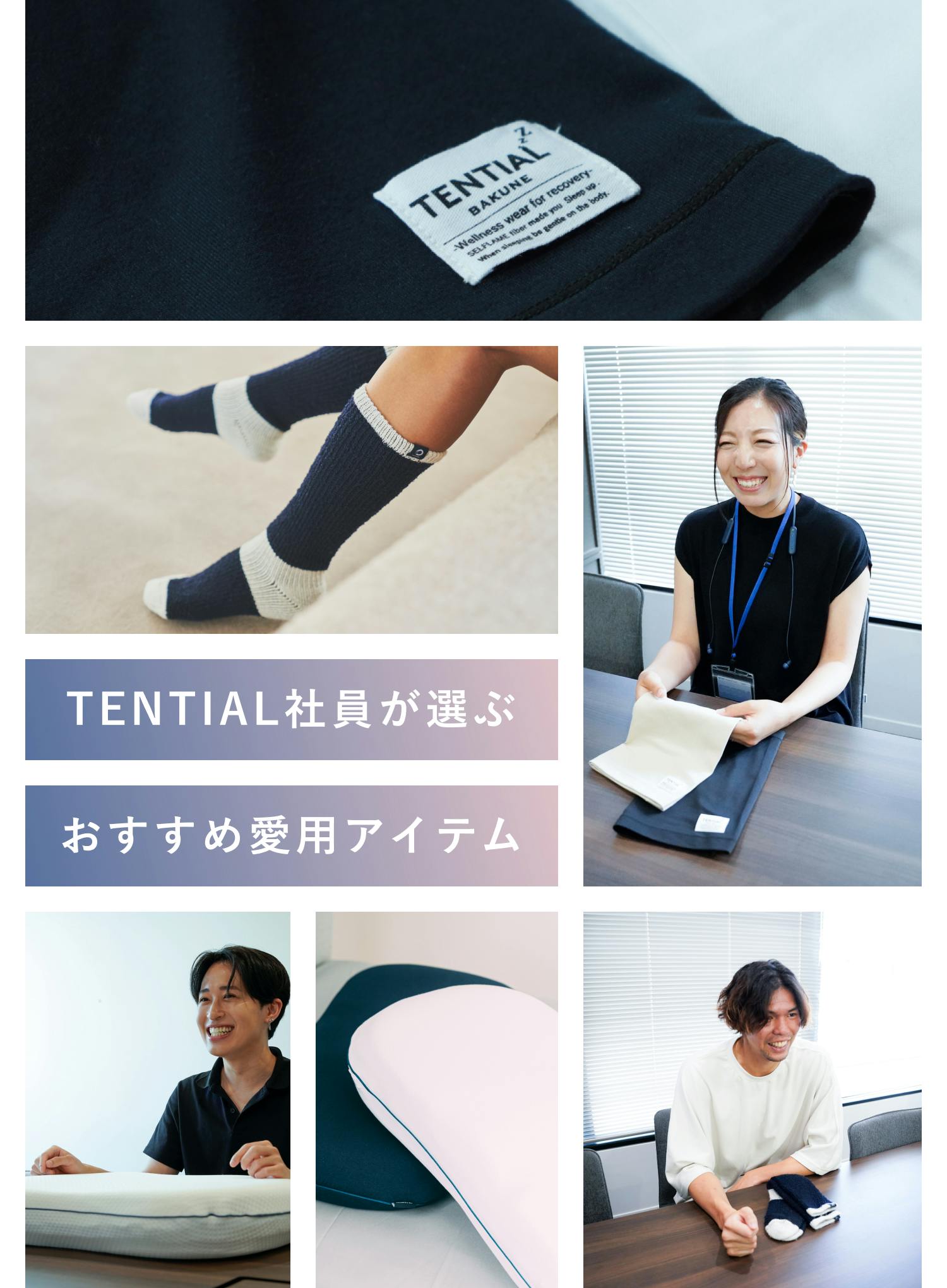 TENTIALは、大人気商品「リカバリーウェアBAKUNE」の他にも健康的な毎日を支えるアイテムを多く開発しています。そこで、毎日健康を気遣い、高いパフォーマンスを発揮しているTENTIALの社員のリアルな愛用商品をご紹介いたします。
