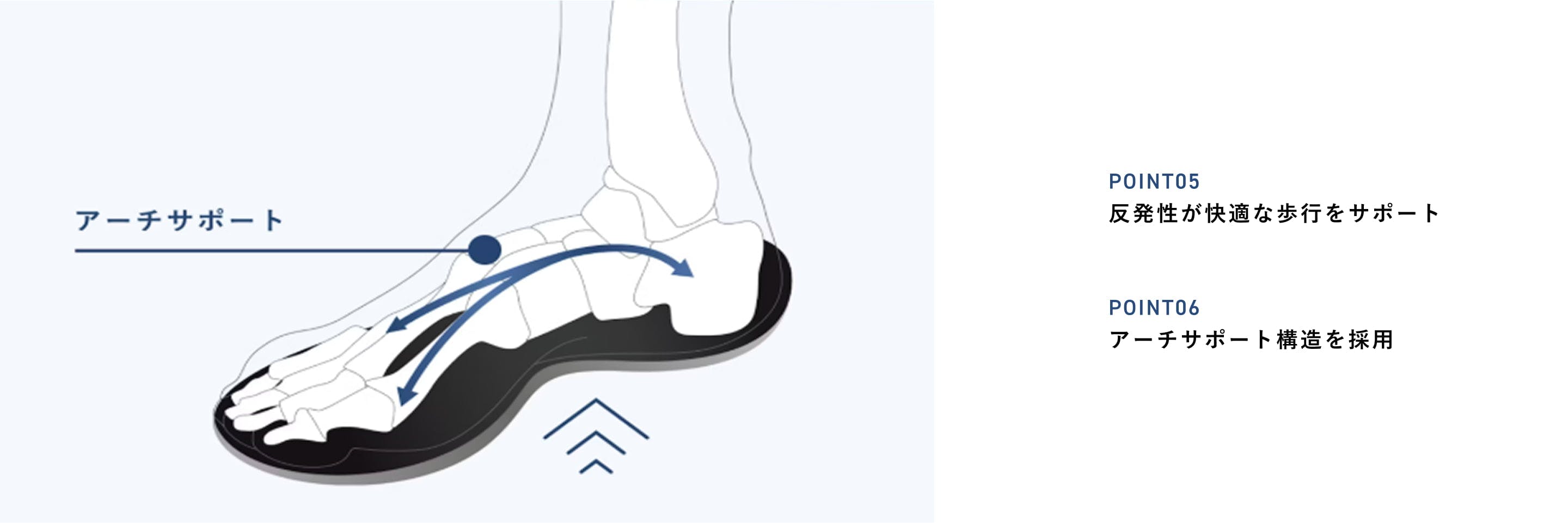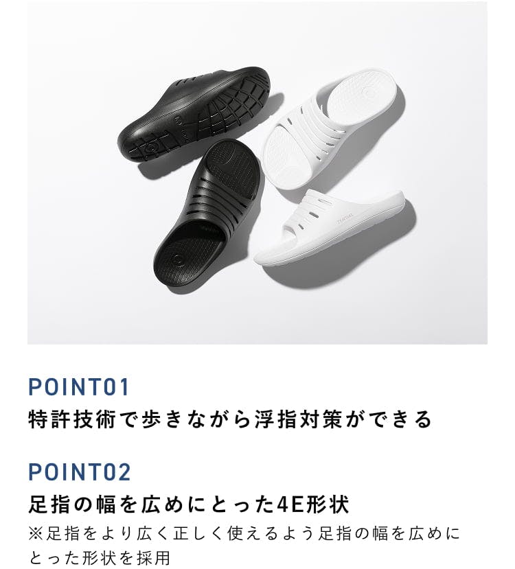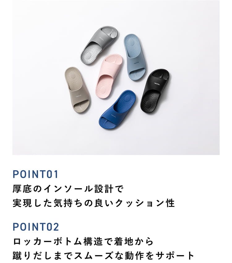 サンダルシリーズではその考えに基づき、足の負担を軽減する『リカバリー』
