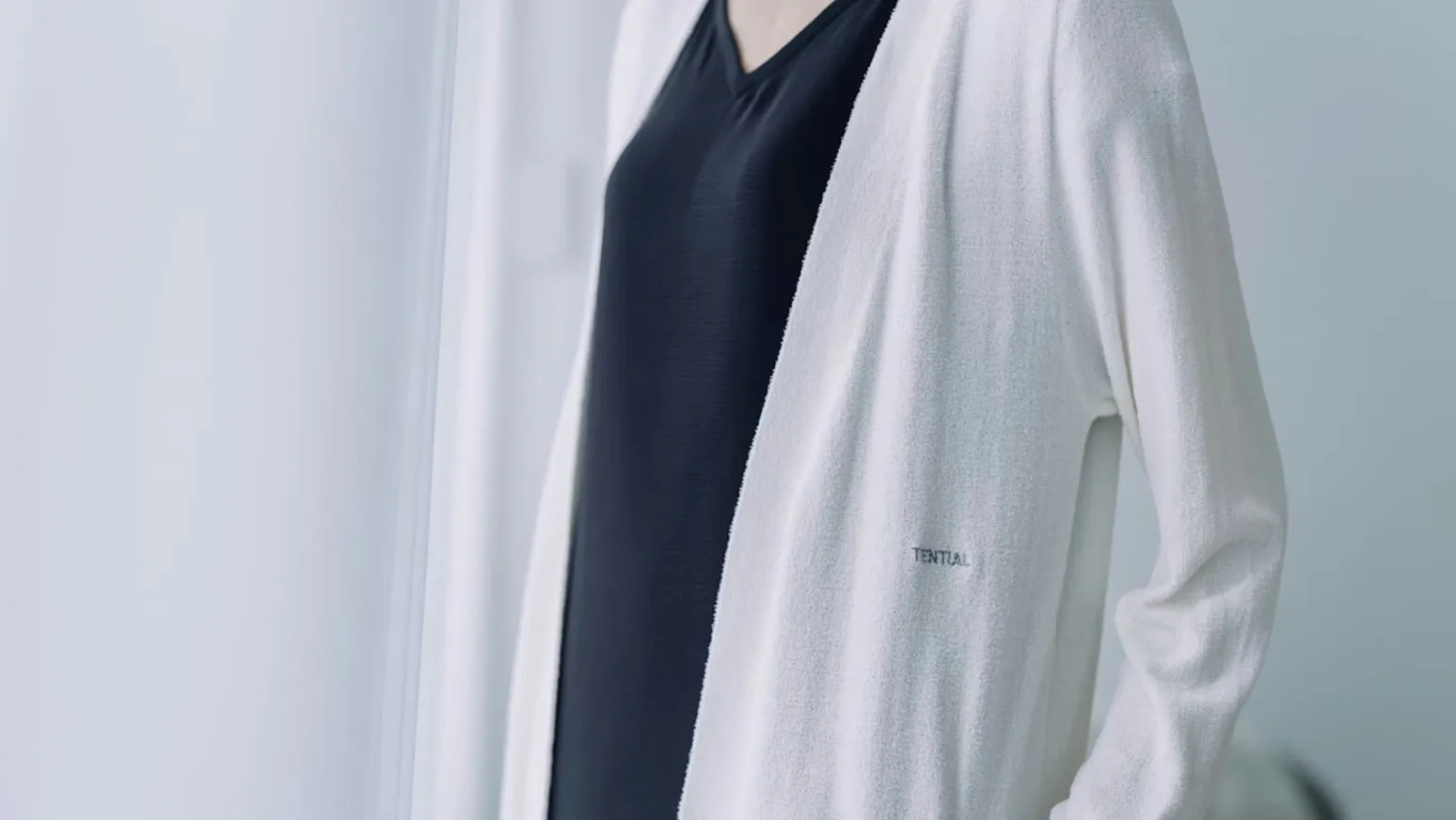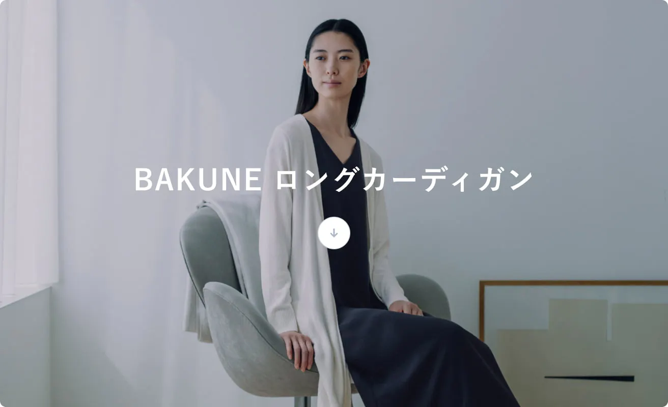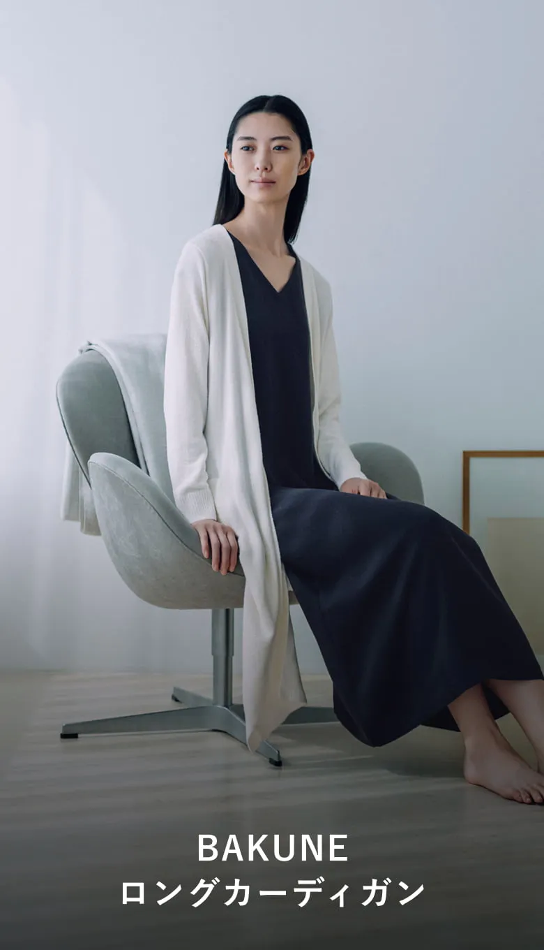 BAKUNEの上から気軽に羽織れる、おうち時間のためのロングカーディガン。