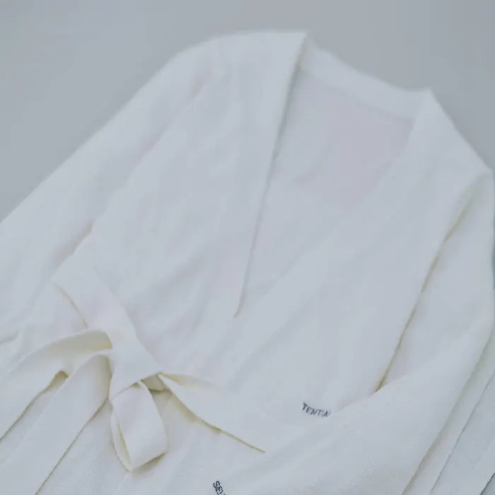 とろみのある、なめらかなニット素材。 軽やかに羽織れて、肌あたりもやさしい着心地に。 重すぎず、さらっと羽織れる生地感に仕上げました。