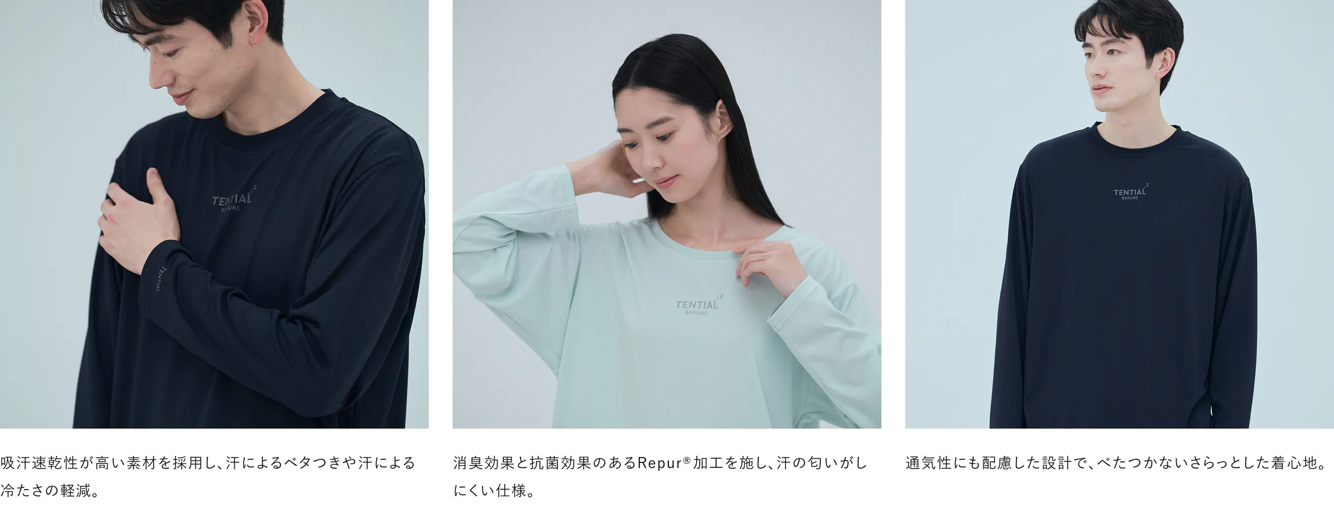 速乾性の高いドライ素材で、睡眠中の汗による不快感を軽減。