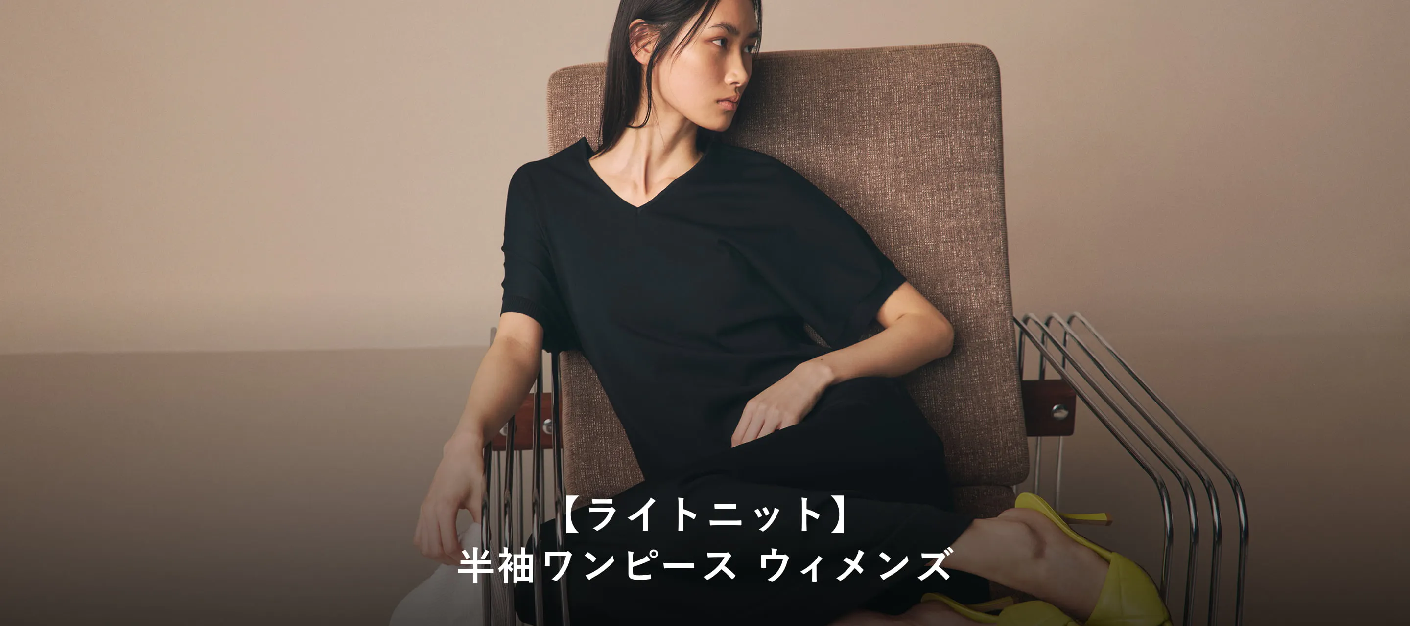 ストレッチ性のあるニット素材のワンピースとロングカーディガンの組み合わせが、毎日のリラックスタイムを支えます。