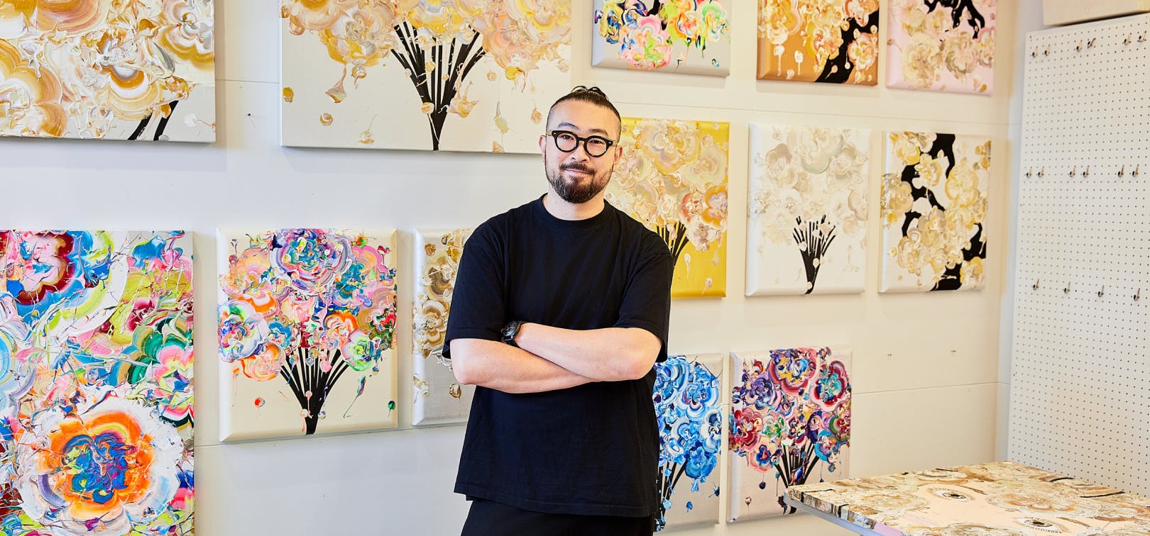 僕はアーティストとして絵を描く仕事をしています。たまにファッションブランドや企業とのコラボレーションの形で「作品提供」を行なうこともありますが、基本的には作品制作をして個展を開くのが主な活動です。活動の一環として海外渡航がとても多く、ほぼ毎月どこかしらに行っていますね。