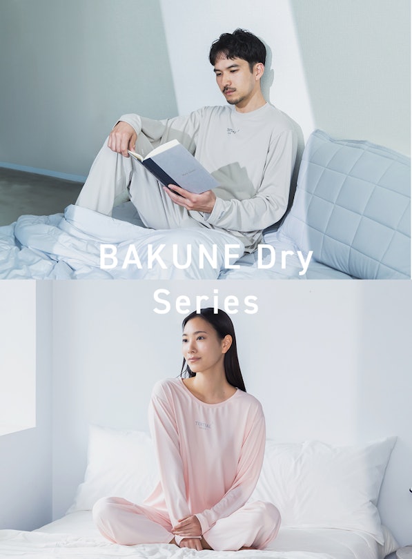 リカバリーウェアBAKUNE Dryは、着るだけで血行を促進し、疲労回復することで健康的な毎日を支える機能性パジャマ。さらに快適な眠りに特化した独自の設計で、毎日の健康に重要な「睡眠環境」をサポートします。