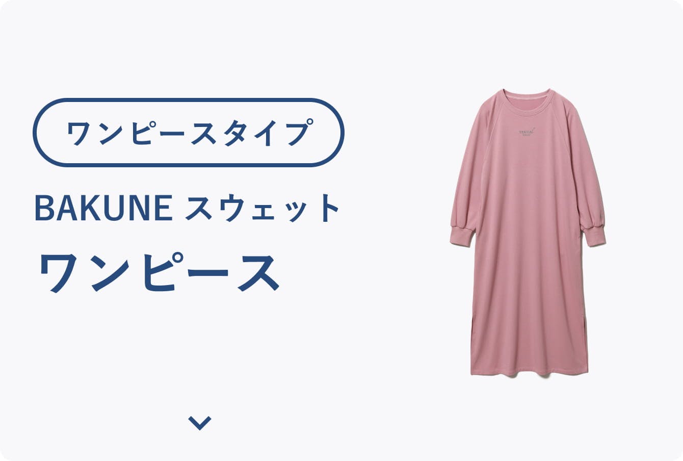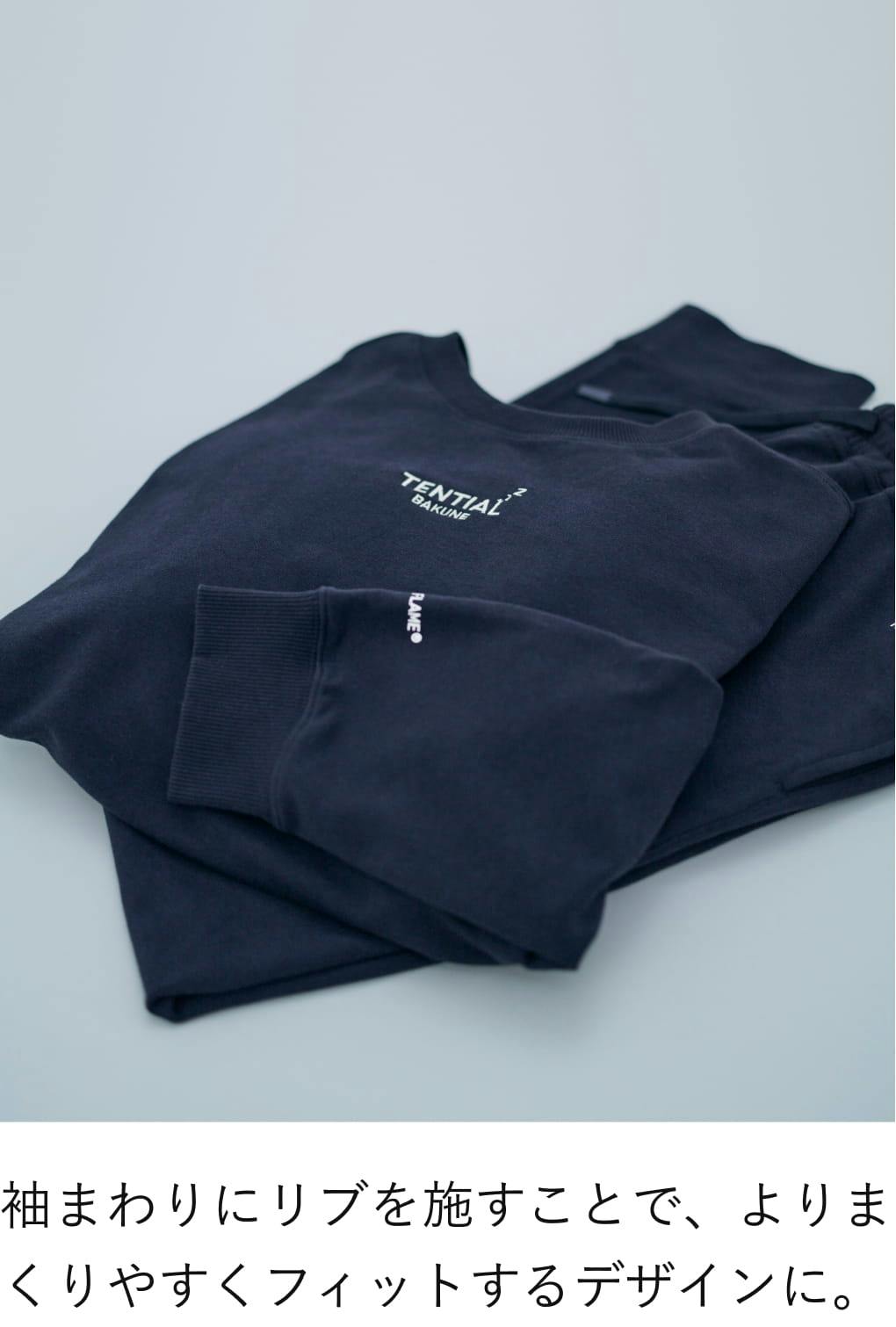 スウェット素材の「BAKUNE」は、シアバター加工による軽くやわらかな肌触りが魅力。