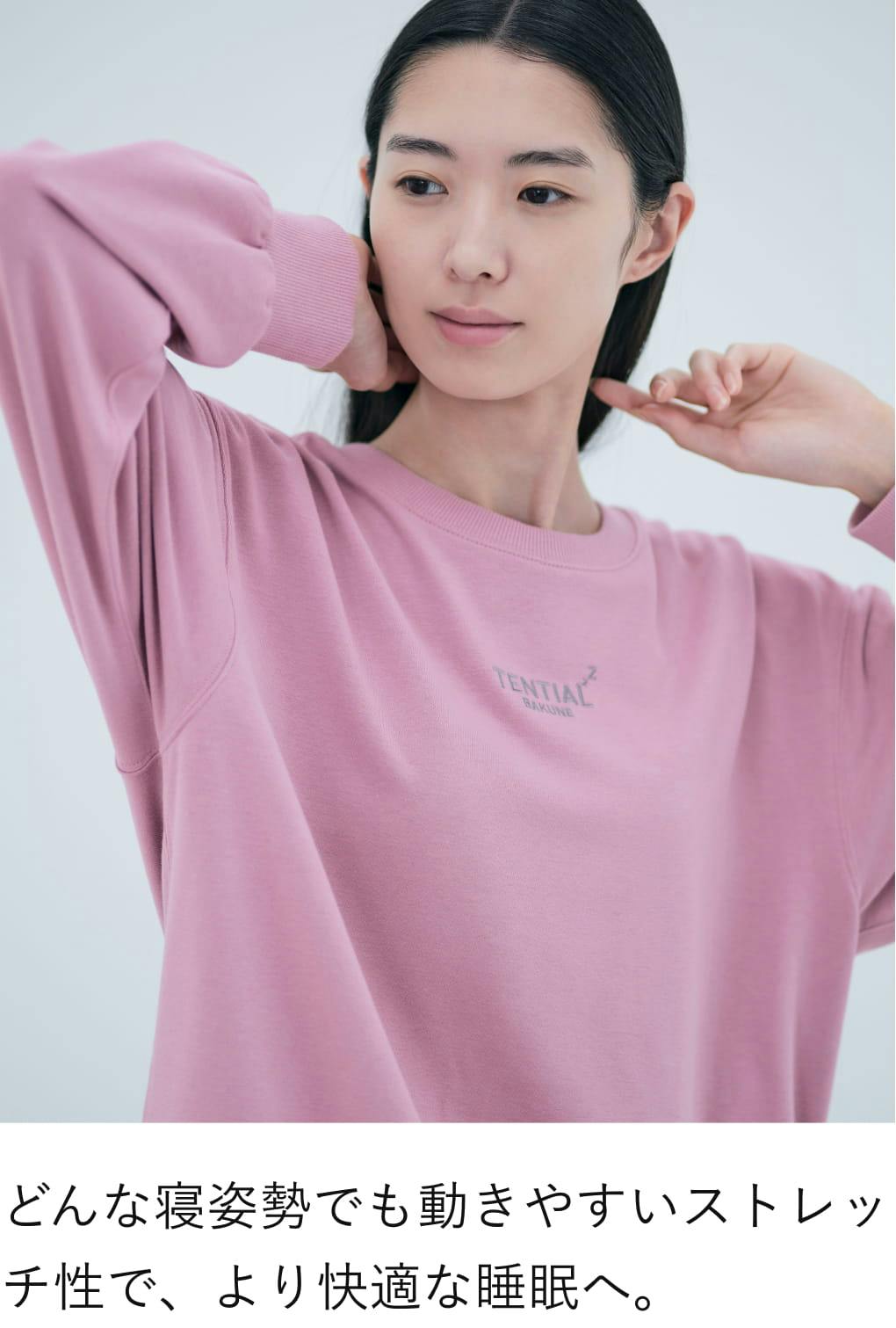 腕の動きを妨げない脇下の可動域設計や背中を包み込む背幅デザインが、自然な寝返りをサポートします。