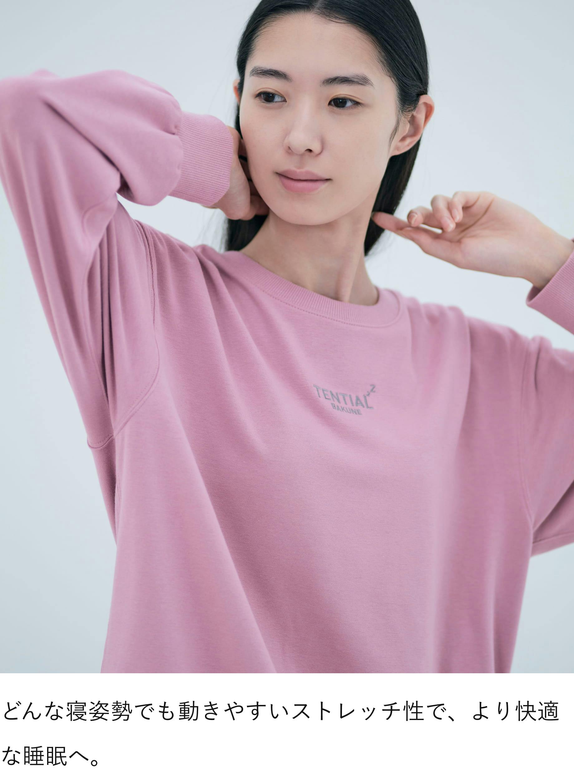 着用データを独自に分析して生まれた「BAKUNE Motion Design®」。 腕の動きを妨げない脇下の可動域設計や背中を包み込む背幅デザインが、自然な寝返りをサポートします。