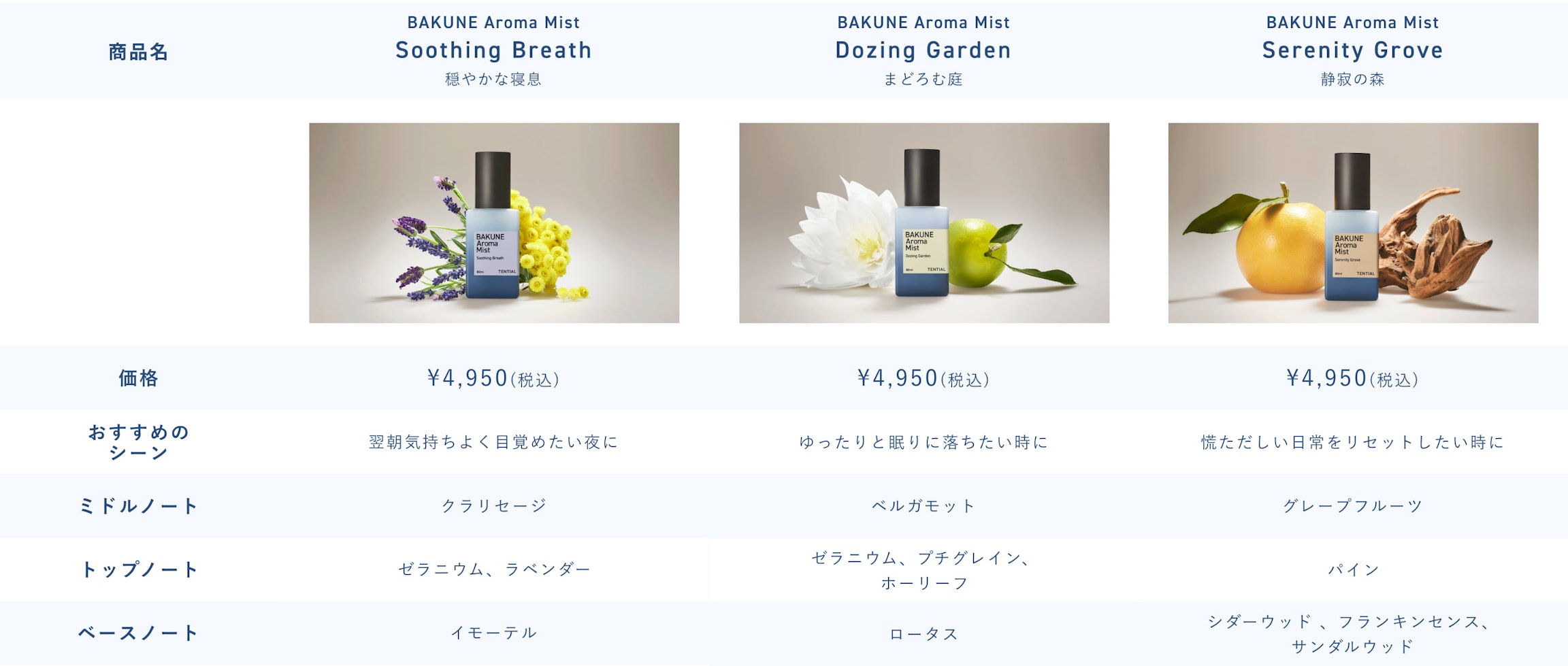 睡眠科学と向き合ってきたTENTIALが辿り着いた、眠りを追求したアロマ。 質の良い休息に寄り添う、『BAKUNE Aroma Mist』。