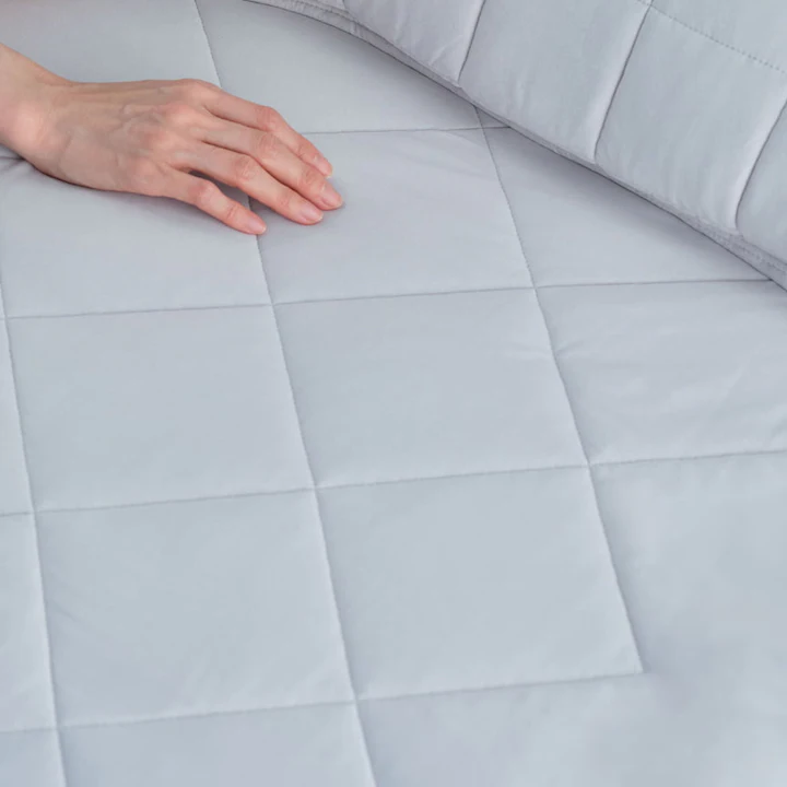 繰り返し熱を放出・吸収し温度調整をしてくれる「PCM繊維」を中綿に採用。固体から液体、液体から固体に変化することで熱エネルギーをコントロールし常に快適な温度を維持。