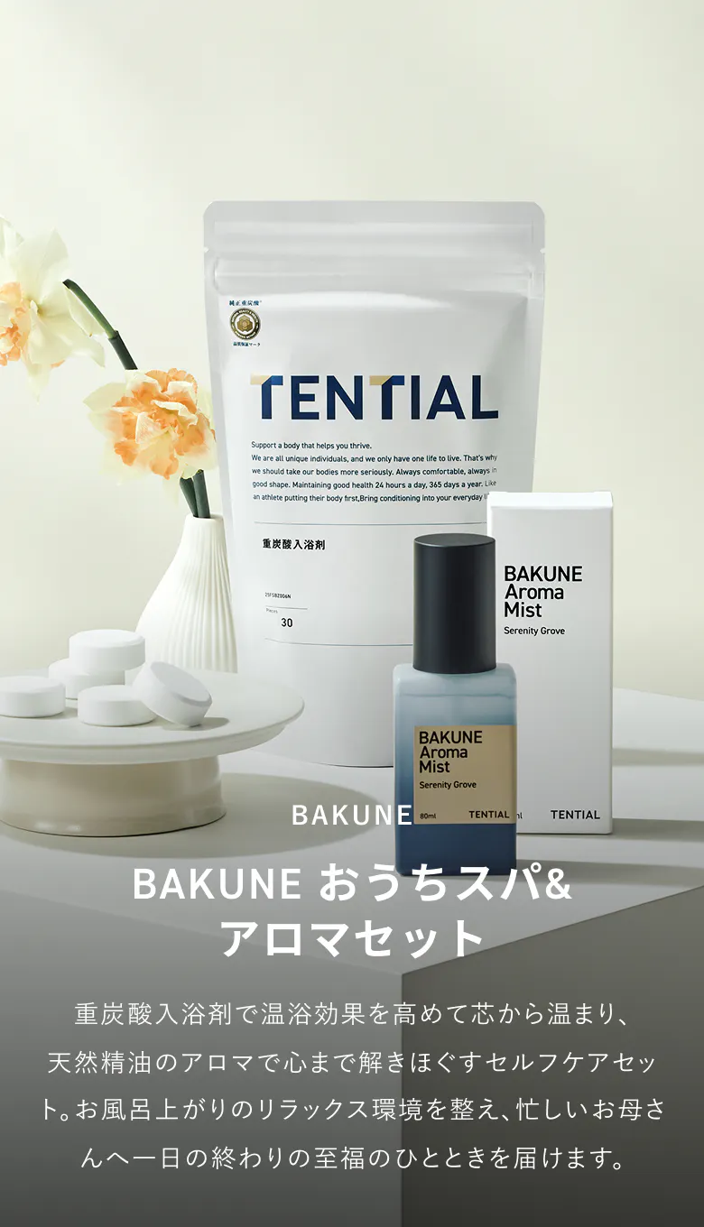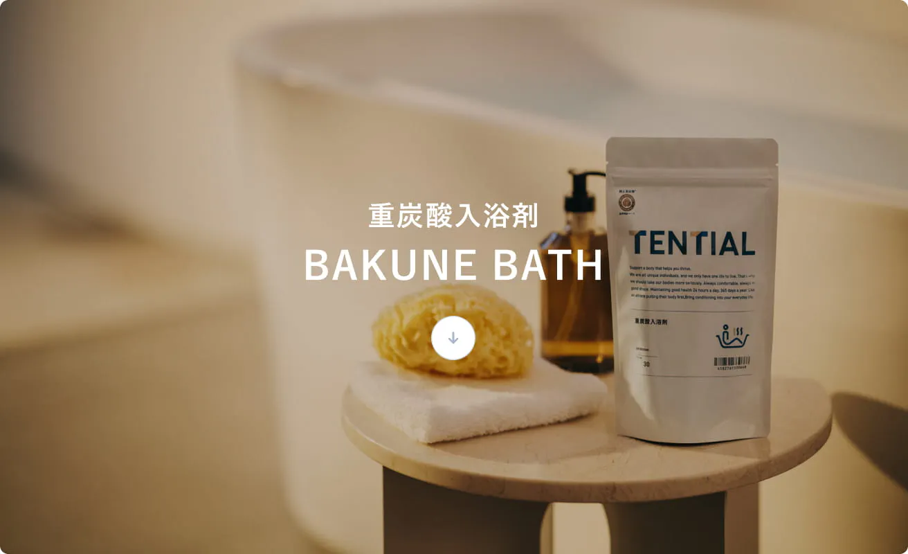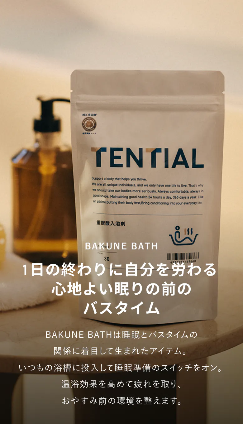 血行促進に重要な重炭酸イオンを高濃度でお湯に溶け込ませることができるよう、独自製法で製造。入浴により血行が促進され、体温が一時的に上昇。そして体温が徐々に下がっていくことにより、おやすみ前の準備へ導きます。