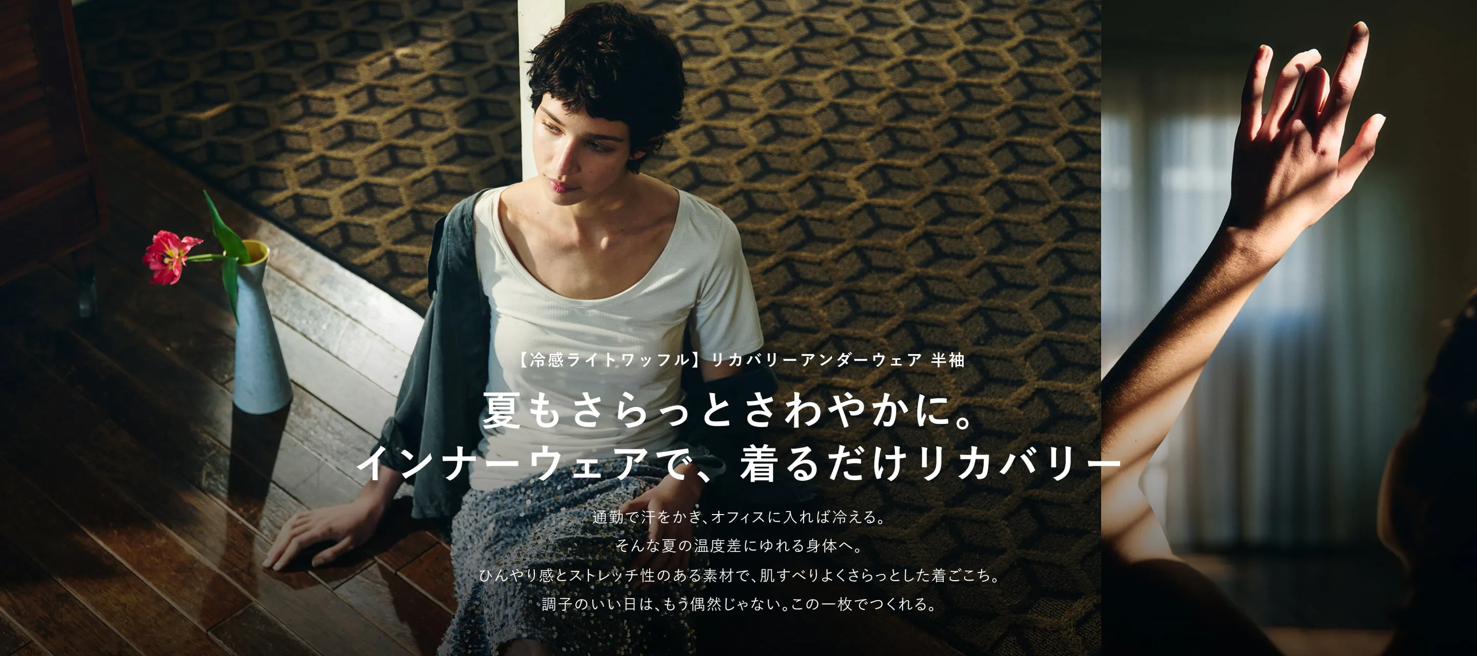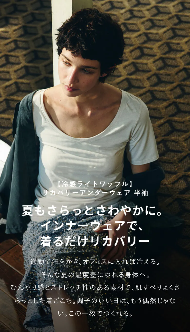 接触冷感性のある素材を使用しており、暑い夏にもぴったり。ストレッチ性をもたせることで、肌すべりがよくさらっとした着ごこちを実現しました。