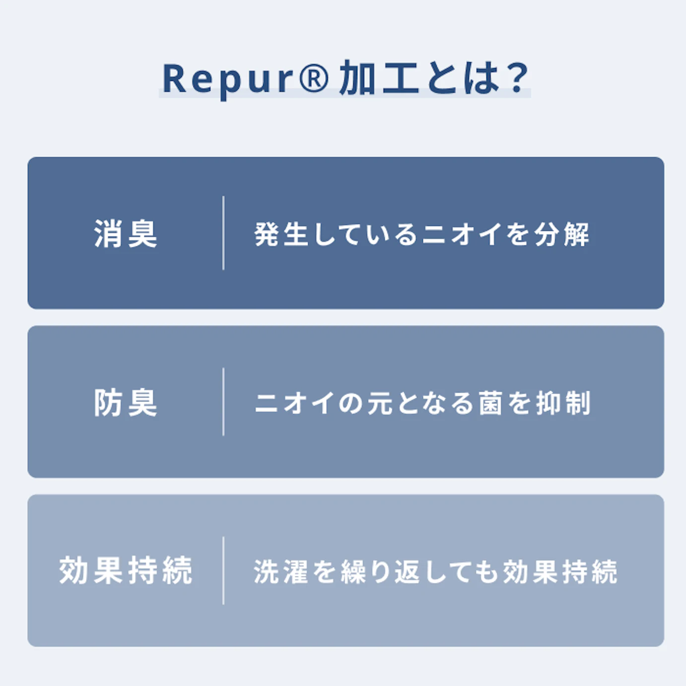 吸汗速乾性がある生地で、夏の不快な汗にも対応。また、抗菌防臭効果を持つリピュール加工を採用することで、一日中、クリーンで快適なコンディションを保ちます。