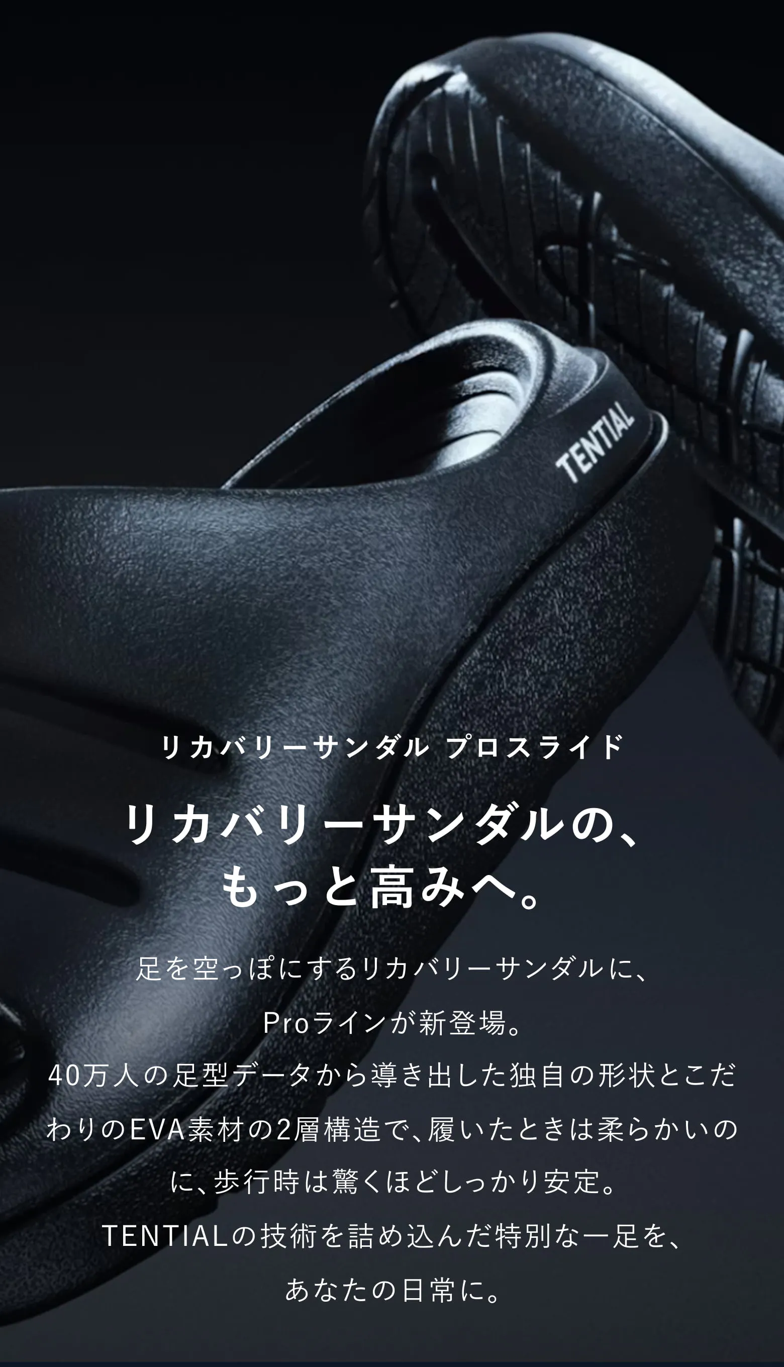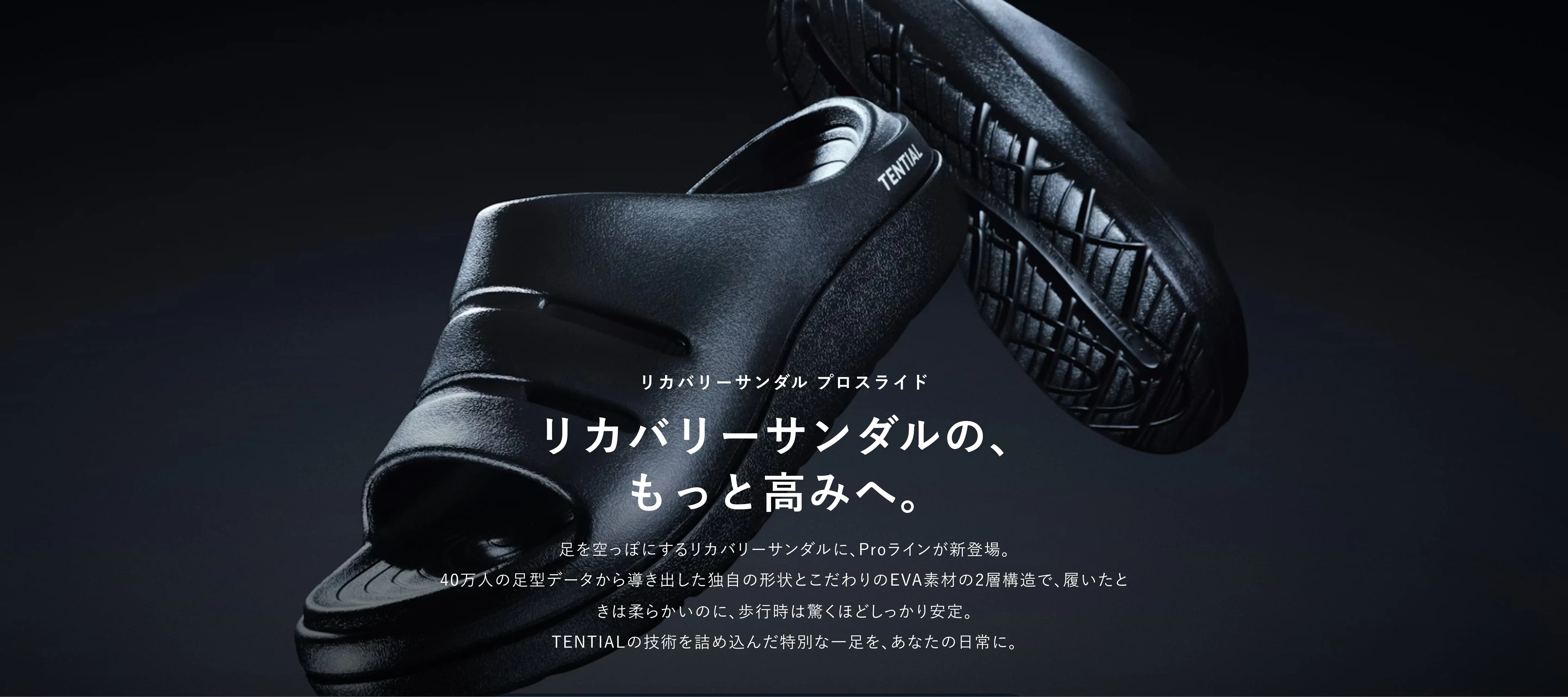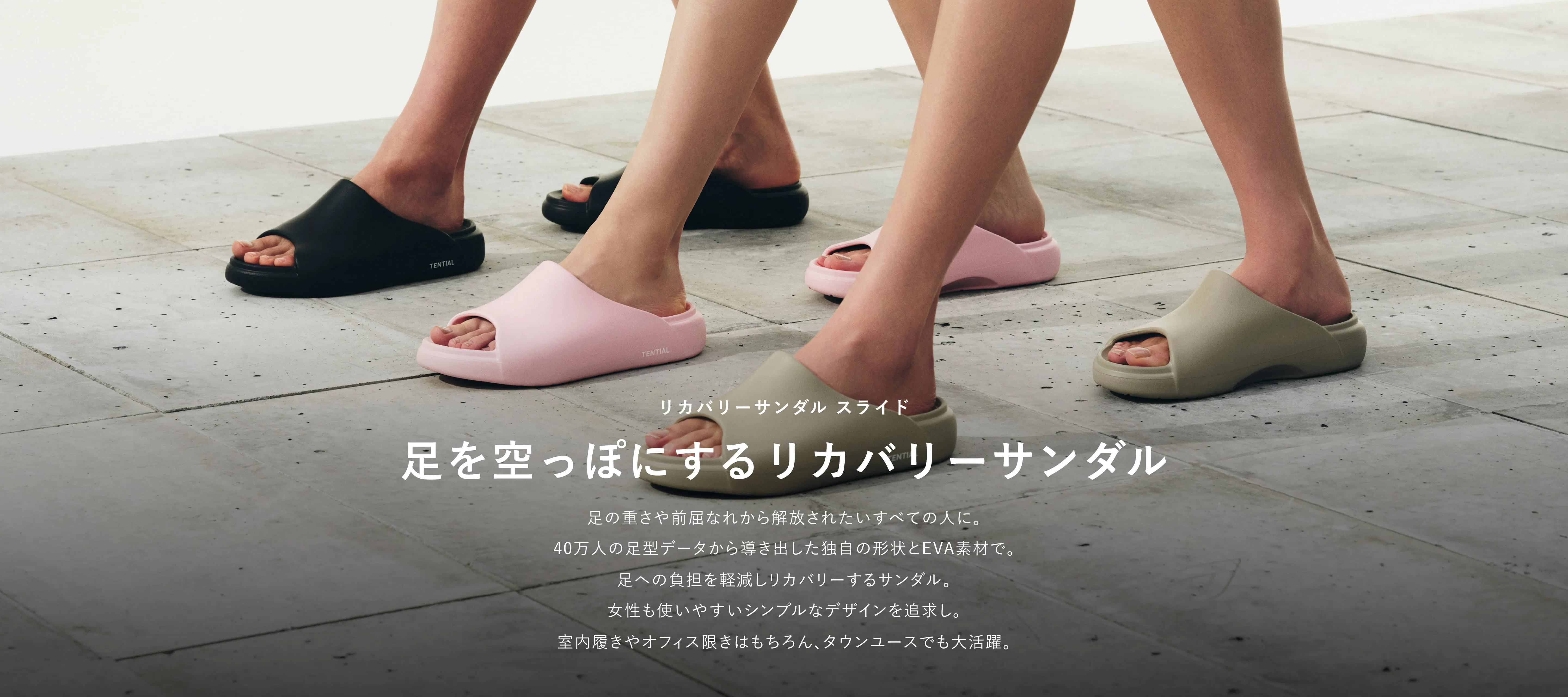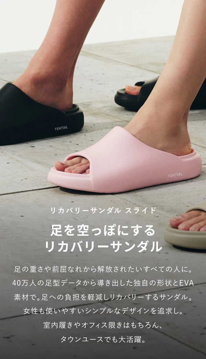 フットベッドをデータに基づいた設計にすることにより、足へのフィット感から、より歩きやすい商品へとアップデートに成功。アウトソールは、歩行時の安定性を高めるために接地面を大きく取るため、つま先側のみ反り上げることで、全体をフラットに近い設計にし、安定感を高めています。柔らかいけれども柔らかすぎないこだわりのEVA素材を使用し、至福の履き心地を提供します。