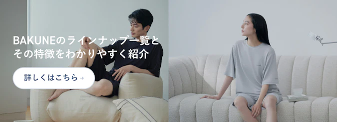 TENTIALのリカバリーウェアである「BAKUNE」 は、着るだけで血行を促進し、疲労回復することで健康的な毎日を支える機能性パジャマ。