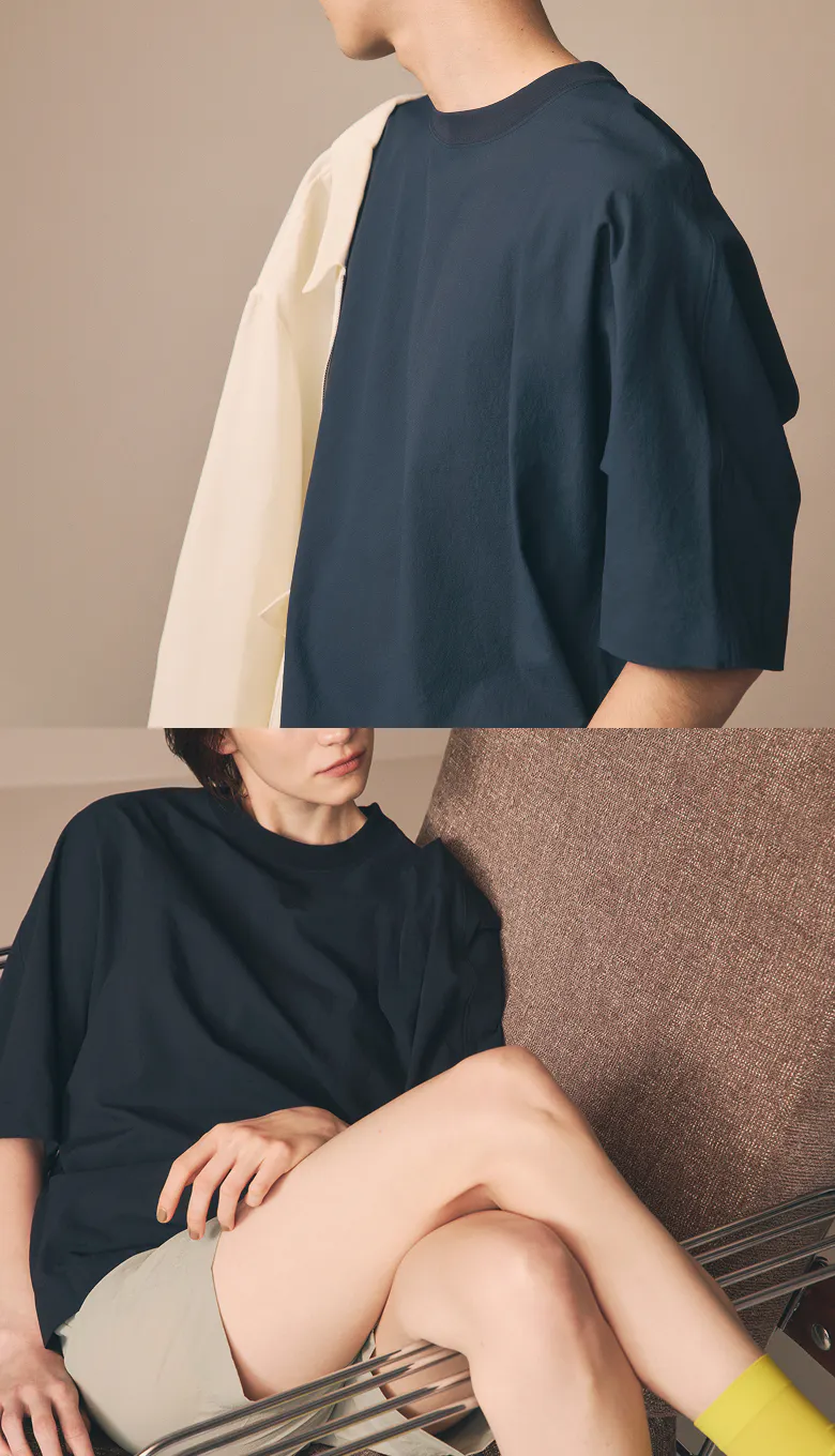 生地表面の微細な凹凸により、肌離れが良く、暑い夏でも快適な着心地が持続。吸放湿性を備えた生地で、蒸れにくく、快適性を保ちます。