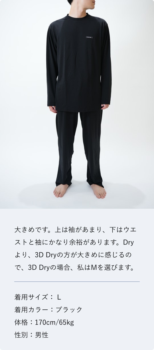 リカバリーウェアBAKUNE Dryが進化した、BAKUNE 3D Dryが登場。サイドに編み目がない3D構造で、より快適な睡眠をサポートします。