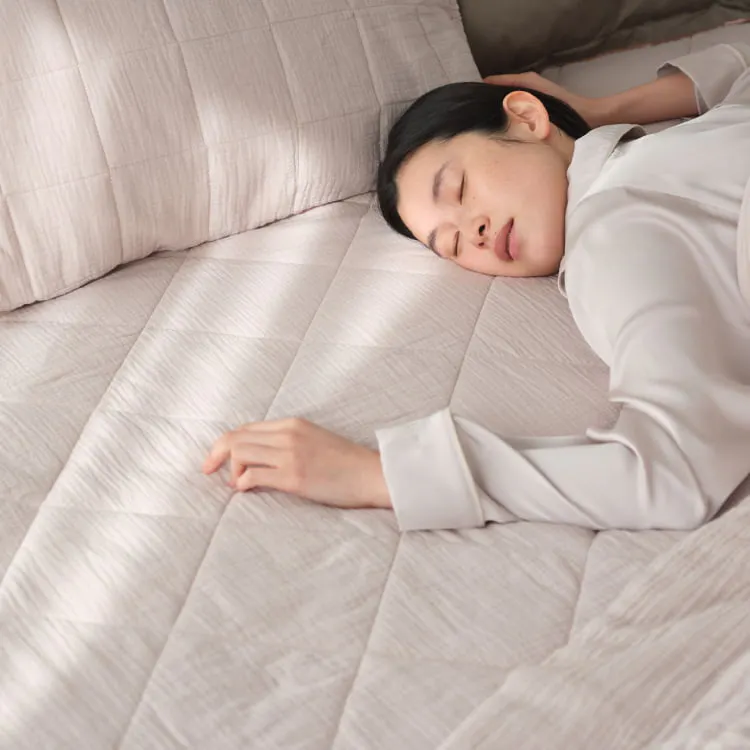 人が心地よく眠るためには、布団の中の環境がとても重要です。 寝床内の温度は 33°C、湿度は50%が最適とされており、このバランスが、 快適な眠りを支えて くれます。質のよい睡眠のためには、こうした理想的な環境を整えることが大切です。