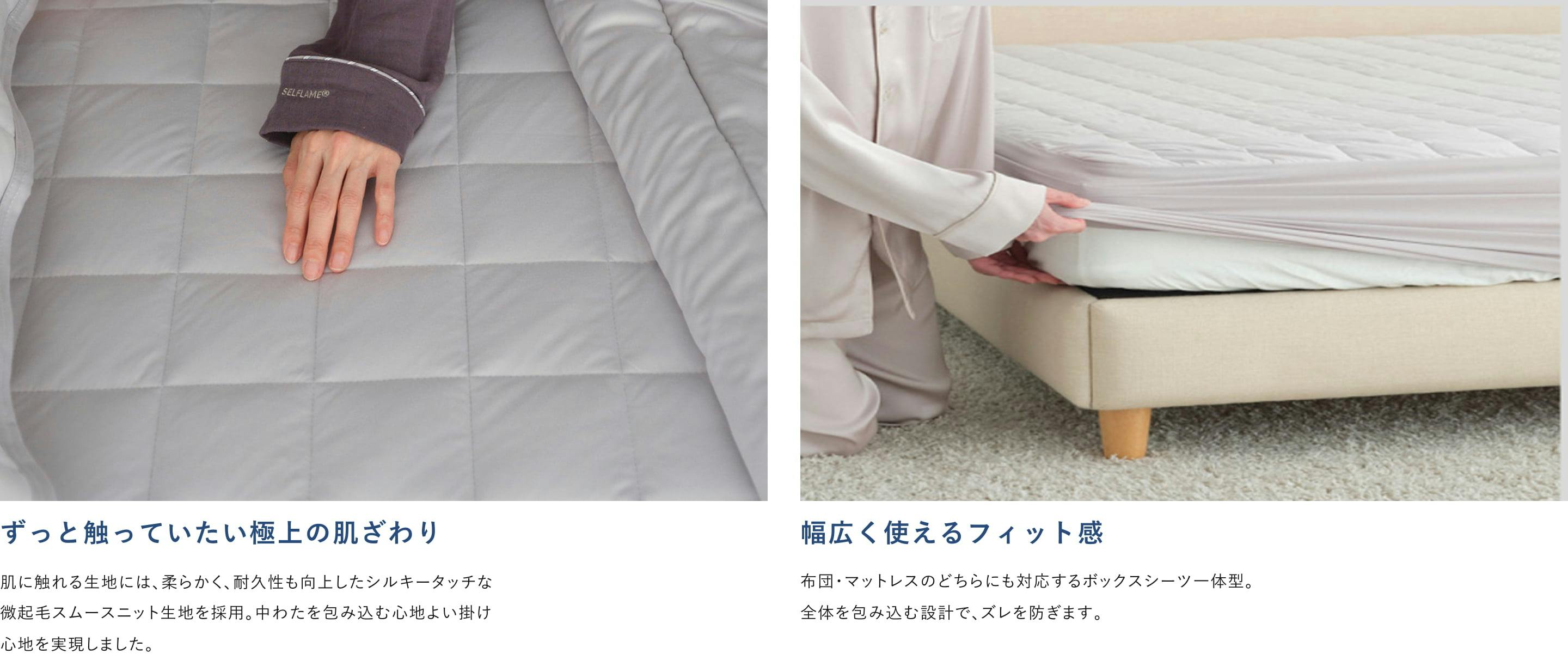 特殊素材の重なり合いが導く、快適な布団内環境。