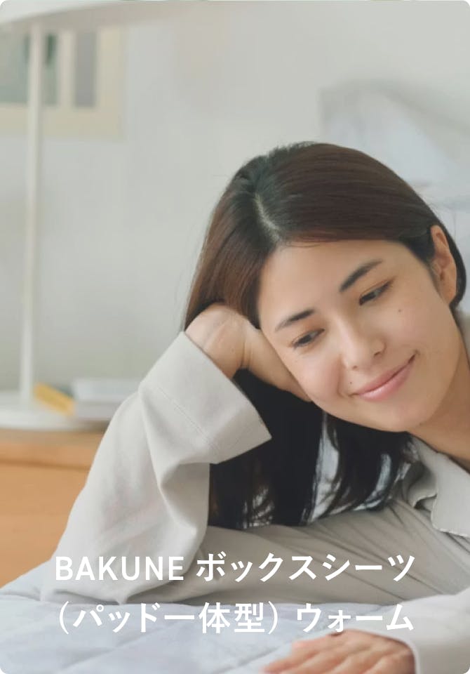 「BAKUNE ボックスシーツ(パッド一体型) ウォーム」で、安心のあたたかさとズレにくい快適さを。