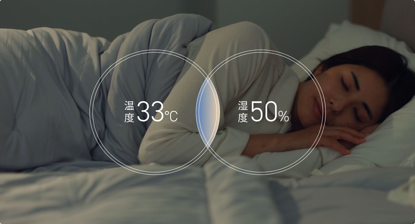 人が心地よく眠るためには、布団の中の環境がとても重要です。寝床内の温度は33℃、湿度は50%が最適とされており、このバランスが、快適な眠りを支えてくれます。質のよい睡眠のためには、こうした理想的な環境を整えることが大切です。