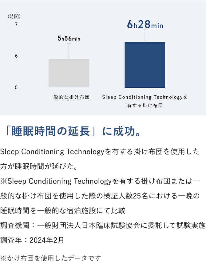 快眠の秘訣は「多層構造」。特殊素材の重なり合いが導く、快適な布団内温湿度。