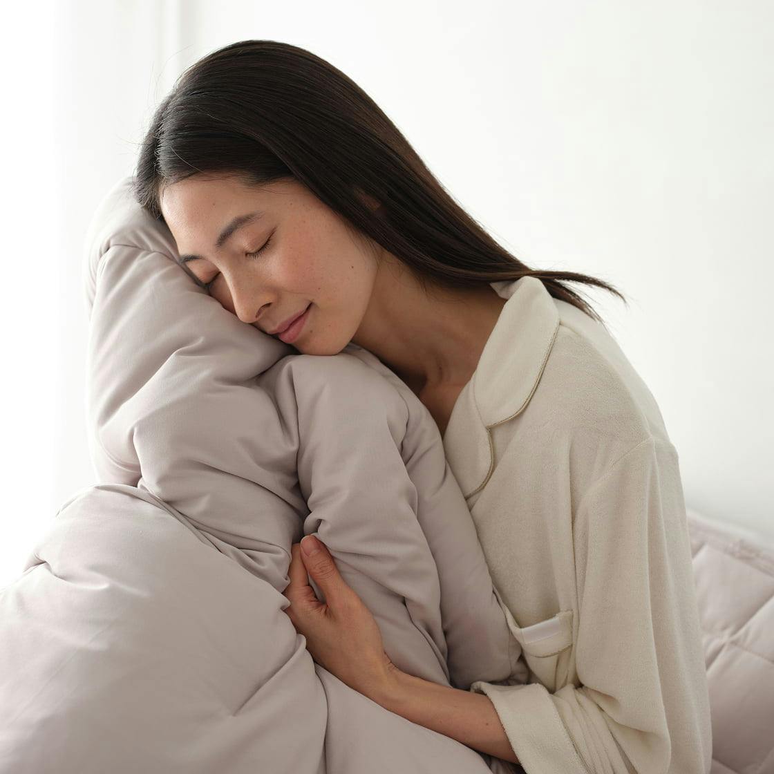 人が心地よく眠るためには、布団の中の環境がとても重要です。 寝床内の温度は 33°C、湿度は50%が最適とされており、このバランスが、 快適な眠りを支えて くれます。質のよい睡眠のためには、こうした理想的な環境を整えることが大切です。
