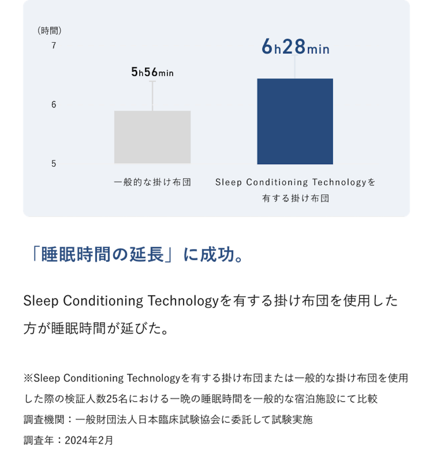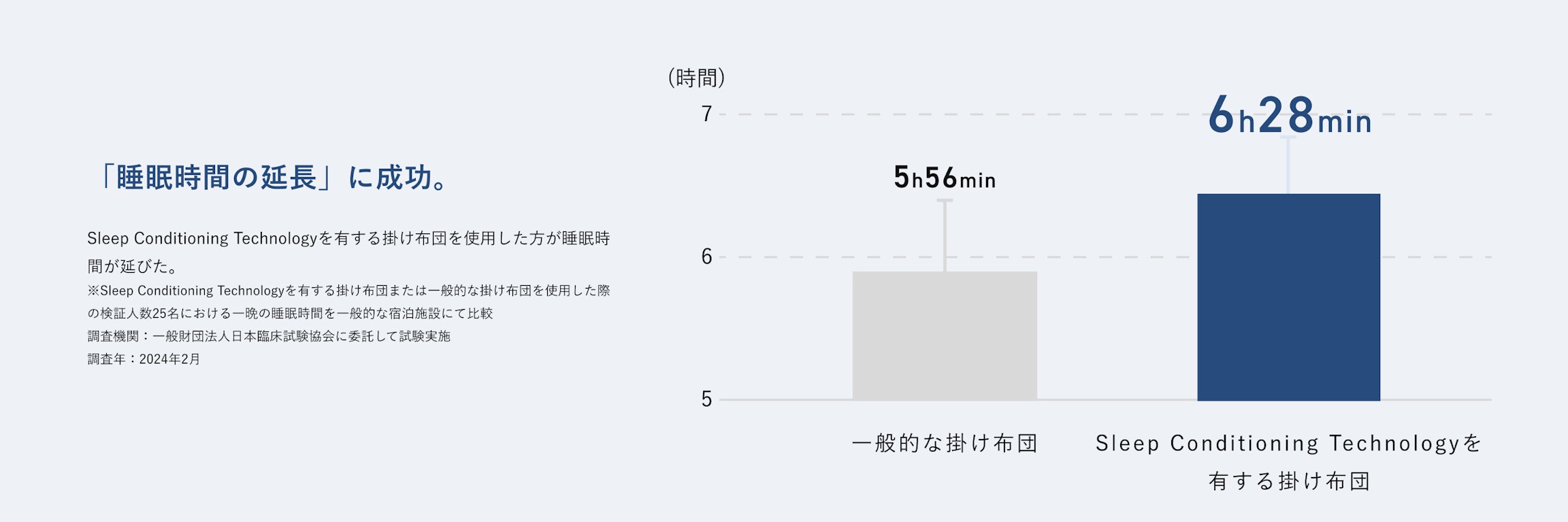 ※一般的な夏用布団と比較して60分後の寝床内湿度が9.2%低いという試験結果が出ています。