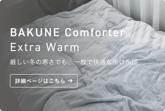 BAKUNE Comforterは、この薄さだからこそご家庭の洗濯機で丸洗いが可能です。