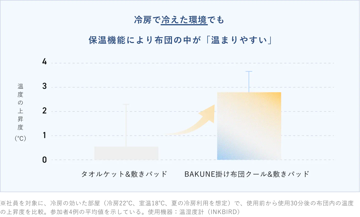 BAKUNE掛け布団クールは、タオルケットと比較して、一晩の睡眠における疲労感の軽減率が高い