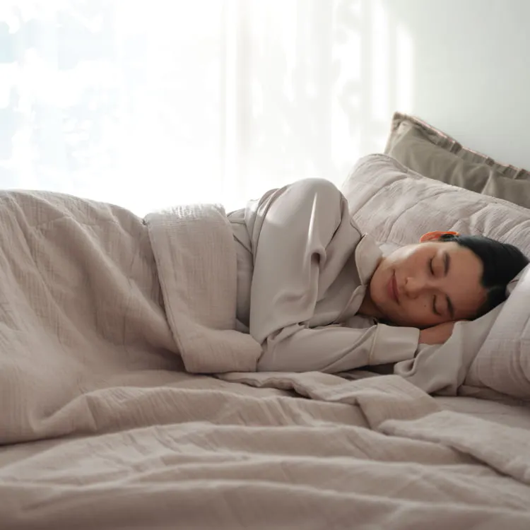 人が心地よく眠るためには、布団の中の環境がとても重要です。 寝床内の温度は 33°C、湿度は50%が最適とされており、このバランスが、 快適な眠りを支えて くれます。質のよい睡眠のためには、こうした理想的な環境を整えることが大切です。