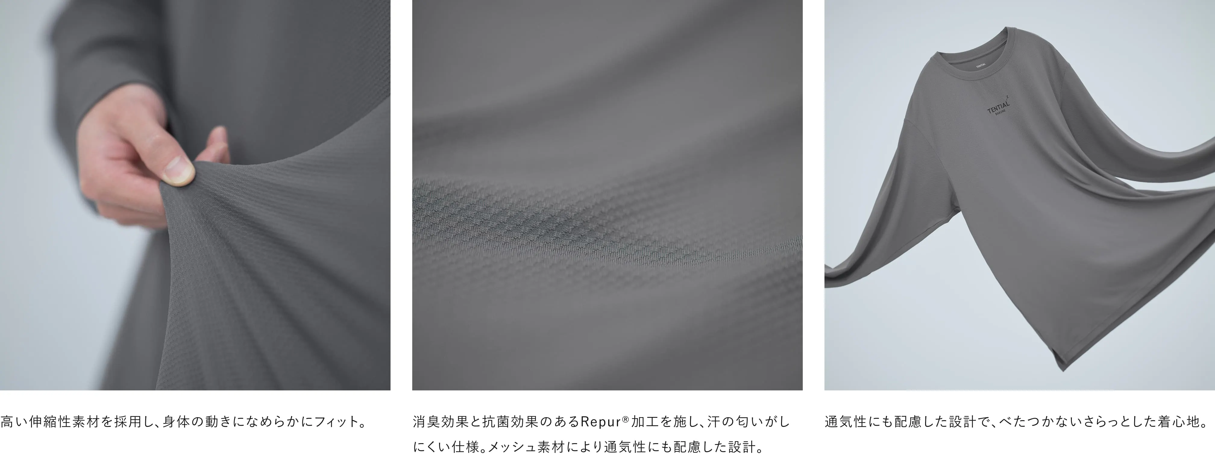 伸縮性の高い薄手の生地で、軽やかな着心地を実現。