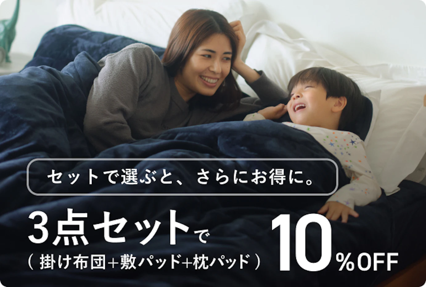 掛け布団や敷きパッドと合わせて使えば、頭から足元まで全身を包み込むあたたかさで、全身をトータルであたためる快適な睡眠環境が整います。