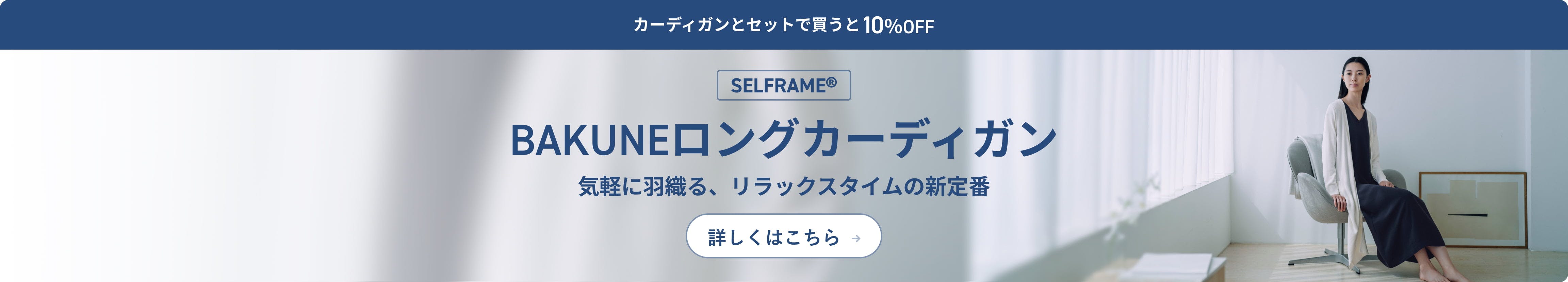 スウェット素材の「BAKUNE」は、シアバター加工による軽くやわらかな肌触りが魅力。