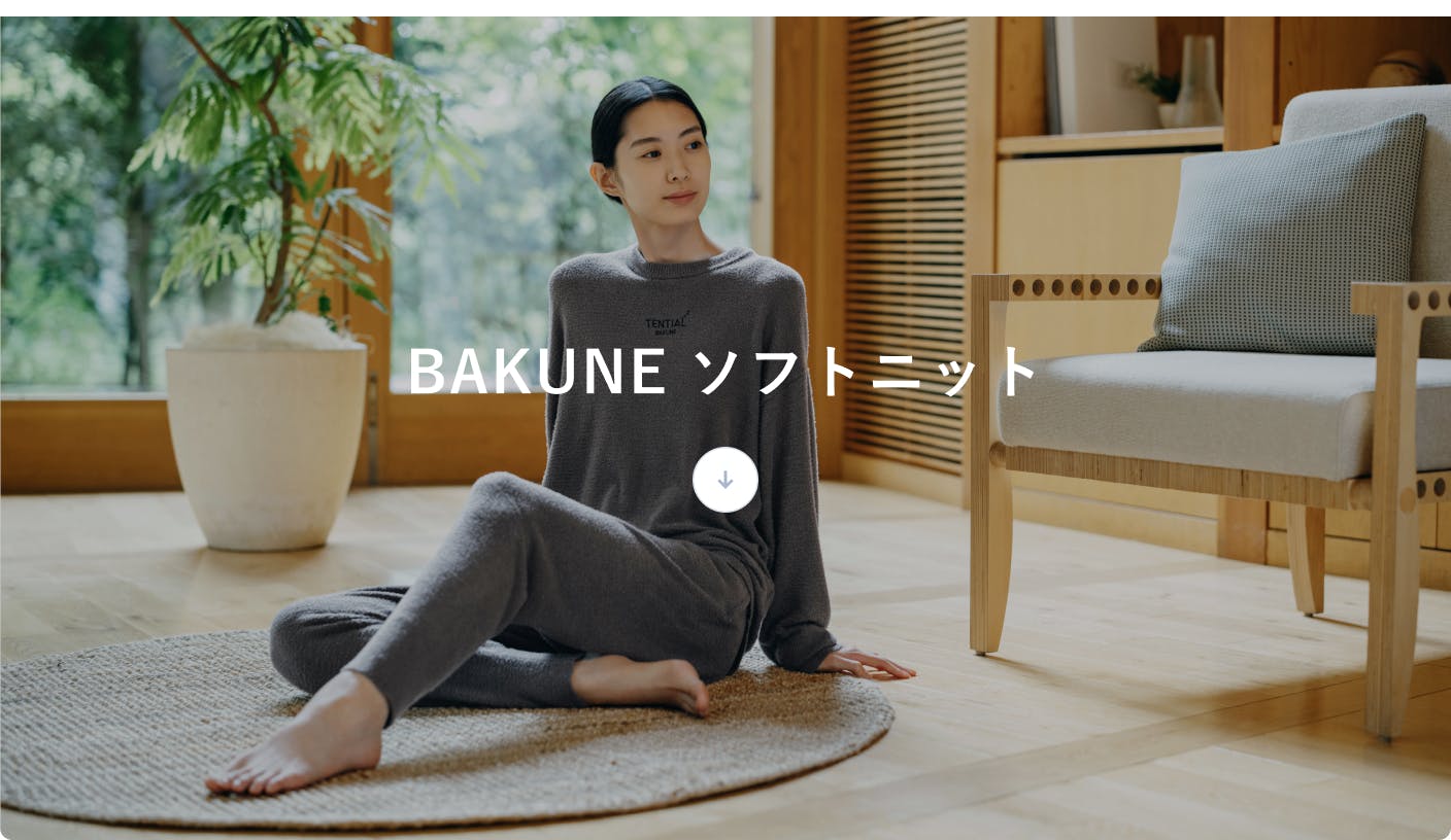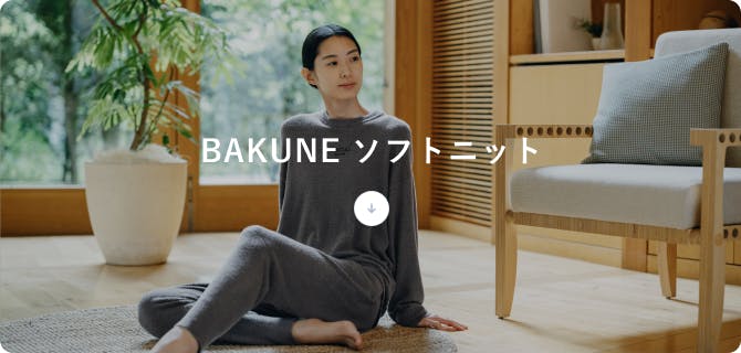 「BAKUNE ソフトニット」。特徴は優しい着心地と、とろけるような肌触り。薄手でストレッチ性も高いため、動きやすさも抜群です。