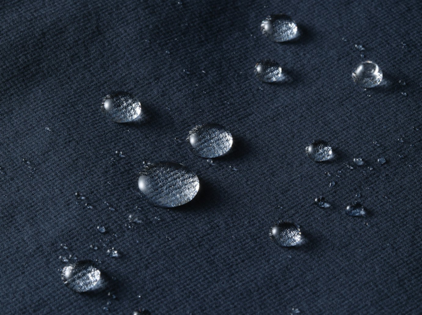 水分をしっかりとはじく素材ながら、風合いはやわらかく肌離れも良好。軽さと通気性を損なわずに、濡れに強い。