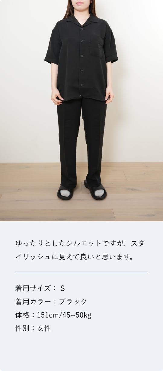 ゆったりとしたシルエットのオープンカラーシャツ。胸元のポケットがさりげないアクセントに。