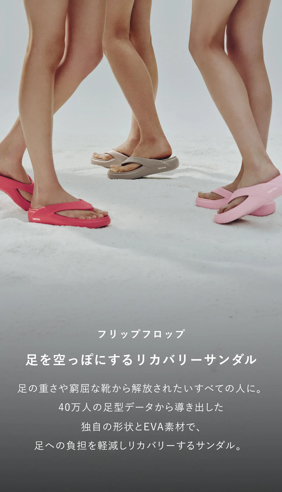 素材には、柔らかすぎず適度な弾力のある独自のEVA素材を採用し、長時間履いても快適な“極上の履き心地”を提供します。