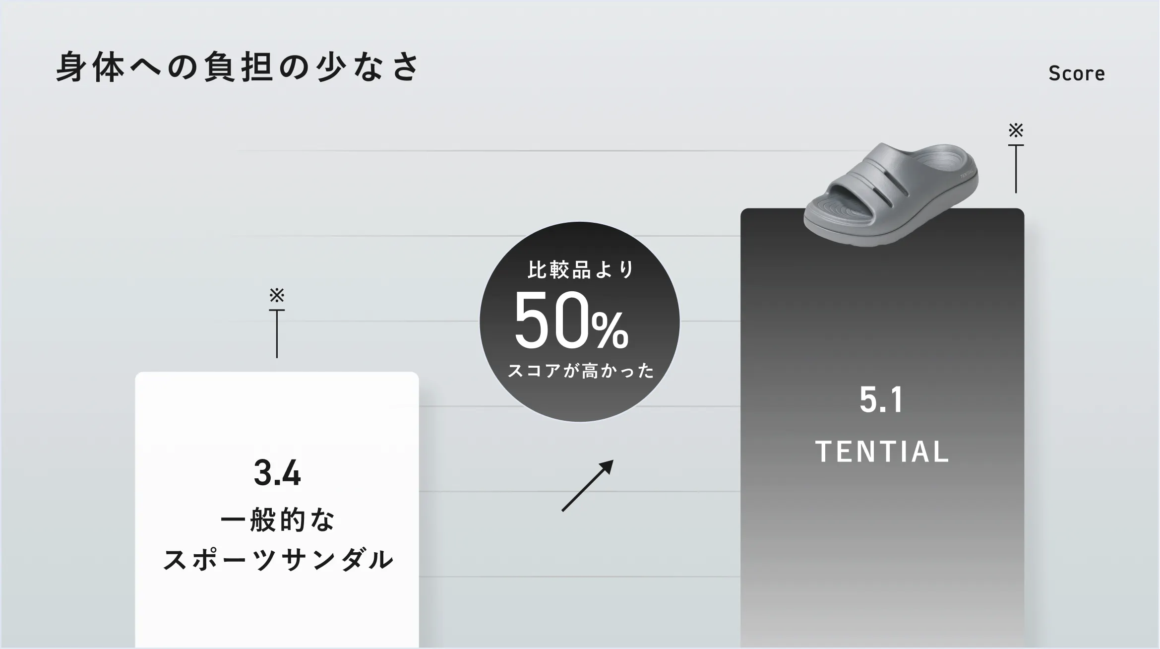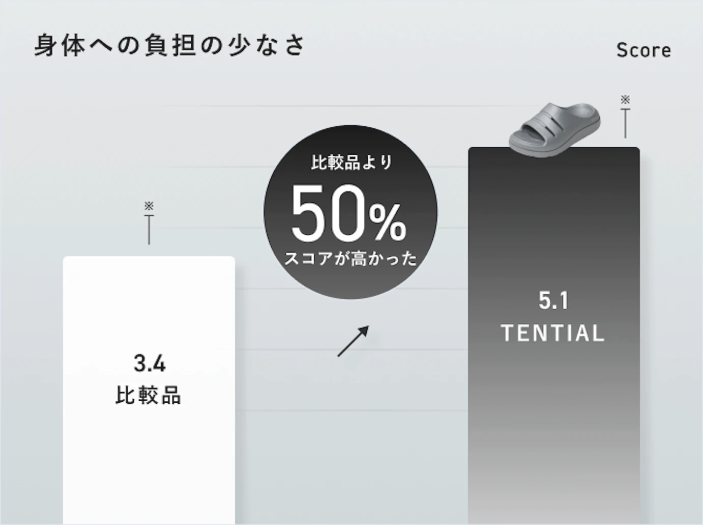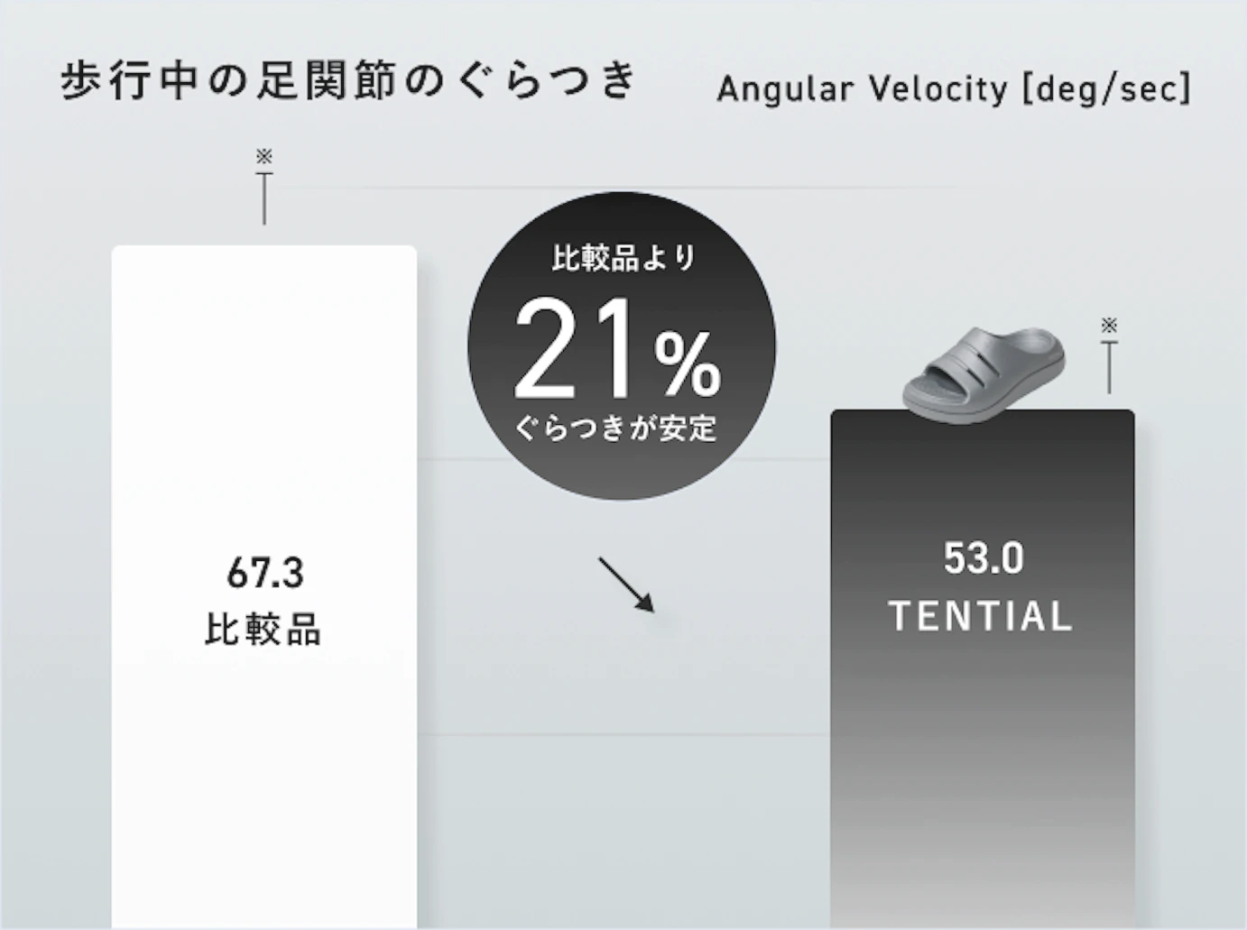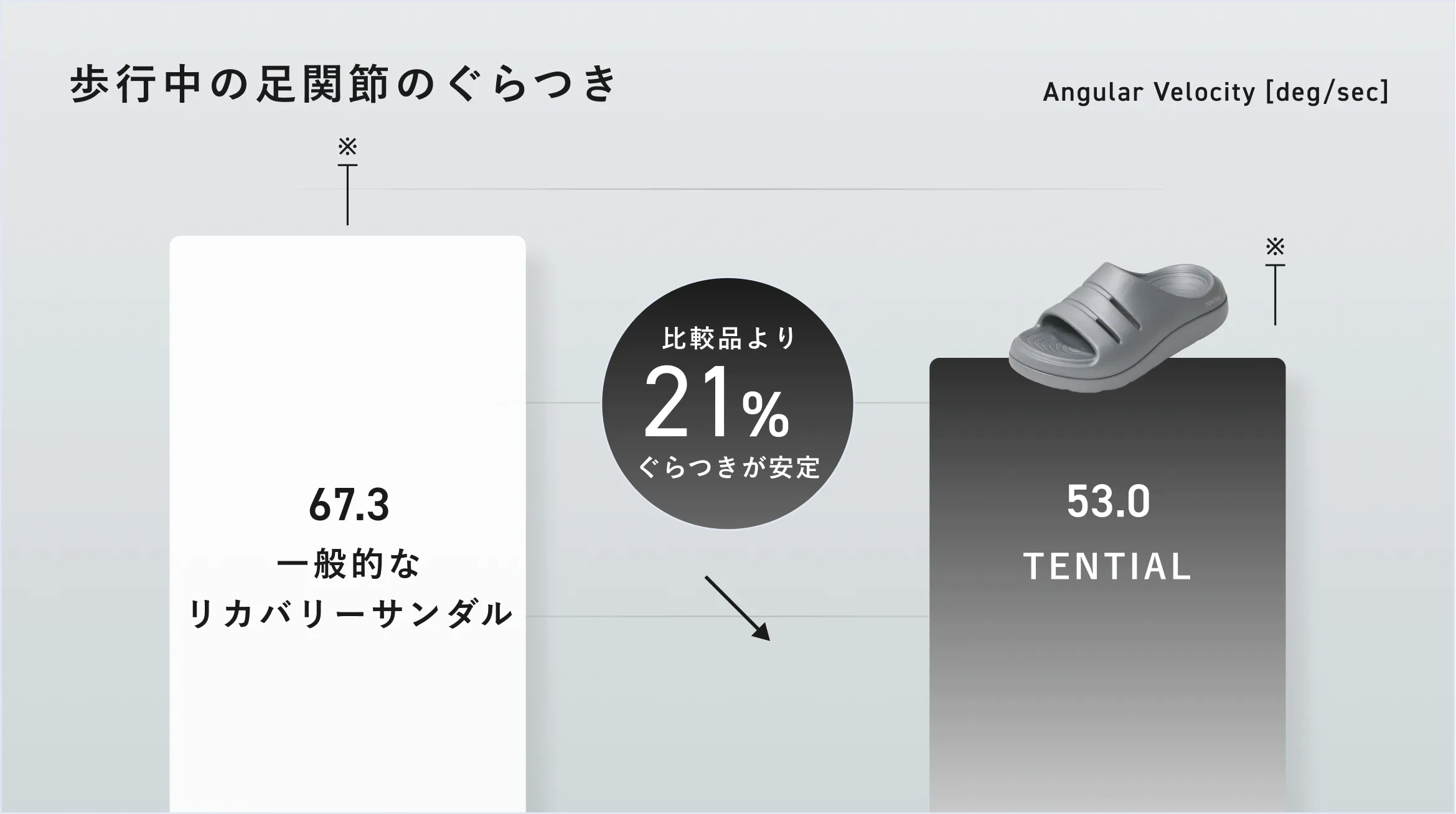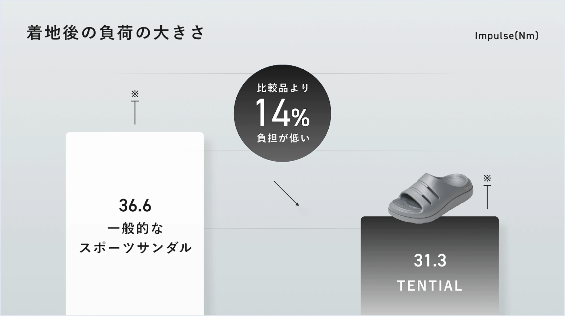 ※フリップフロップと同じソール設計である別のリカバリーサンダルの試験結果