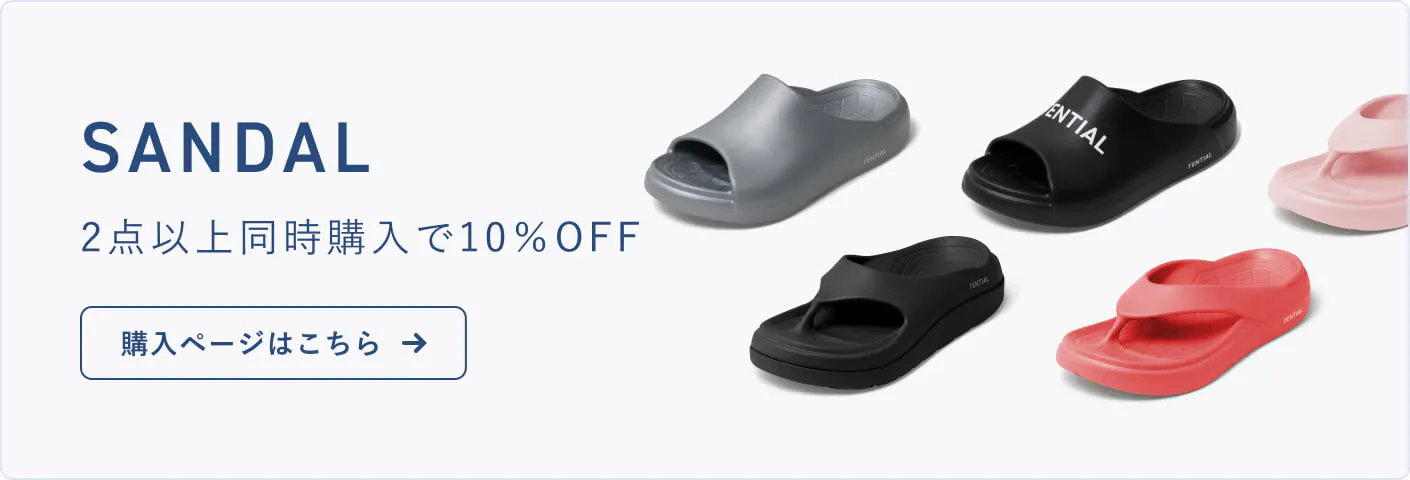 クッション性が低いサンダルは、歩くたびに足へ直接衝撃が伝わりやすく、負担が増えがちです。