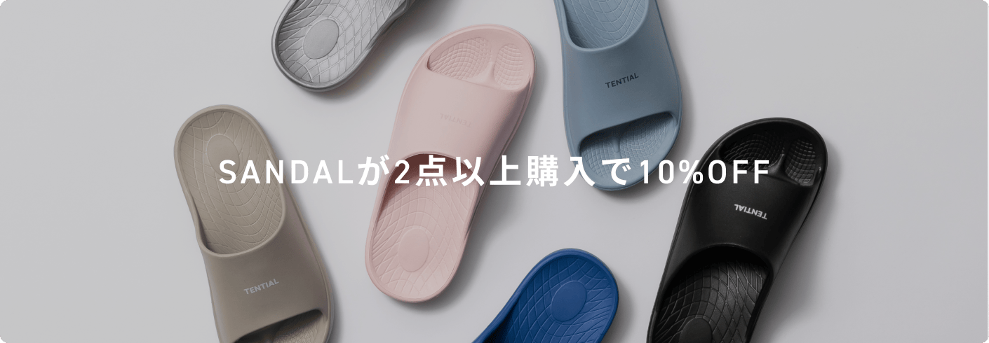足を空っぽにするリカバリーサンダルに、Proラインが新登場。40万人の足型データから導き出した独自の形状とこだわりのEVA素材の2層構造で、履いたときは柔らかいのに、歩行時は驚くほどしっかり安定。TENTIALの技術を詰め込んだ特別な一足を、あなたの日常に。