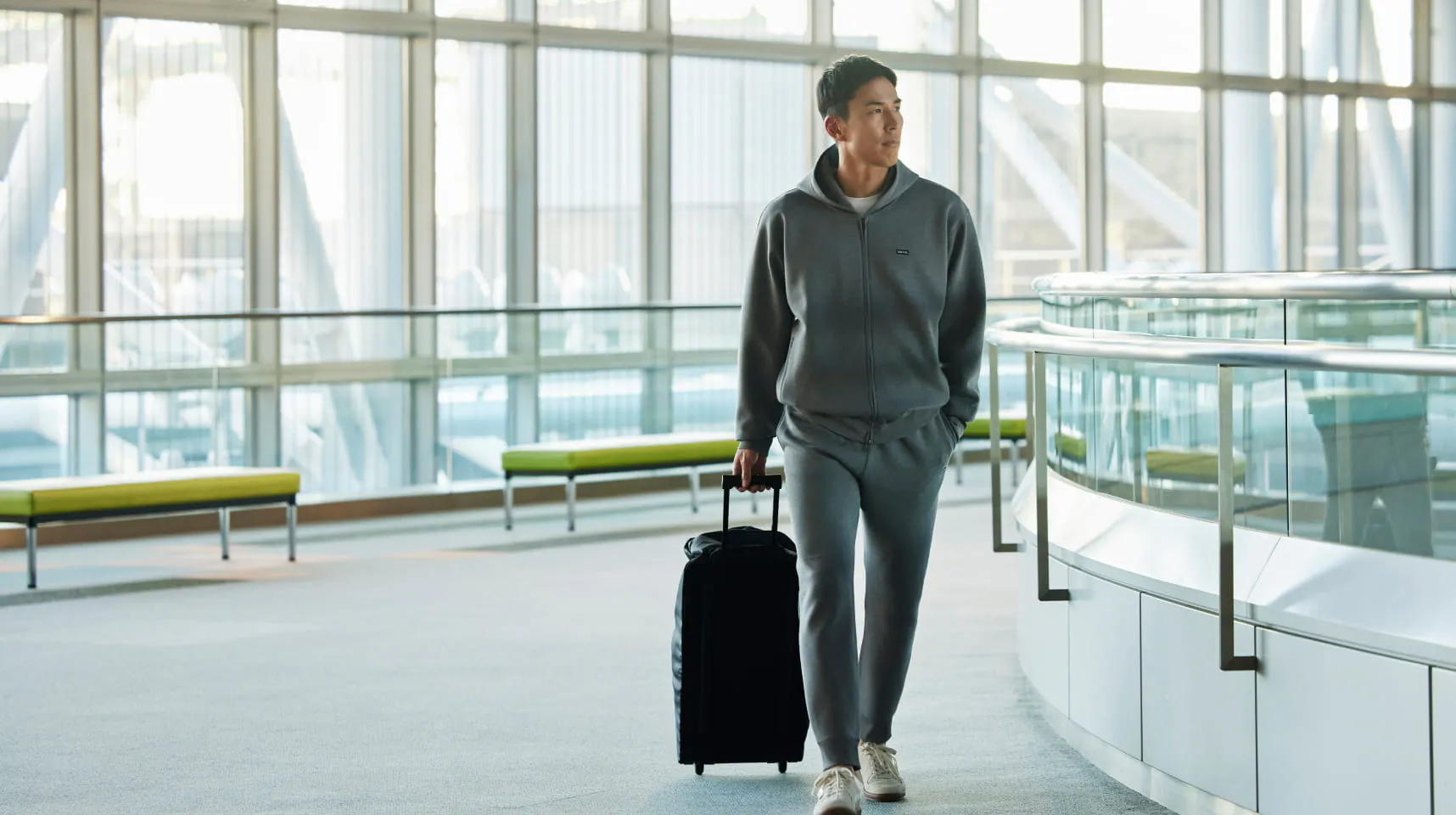 かつて機内で隣の方がスーツから着替えているのを見て、「これだ」と思いました。
