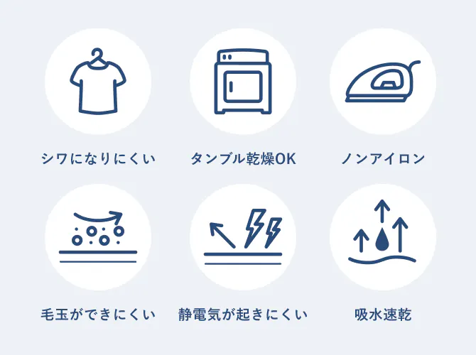 乾燥機の使用もOK。シワになりにくく、お手入れにかかる時間を大幅に削減します。忙しいあなたの日常をサポートし、日々の生産性向上に貢献します。